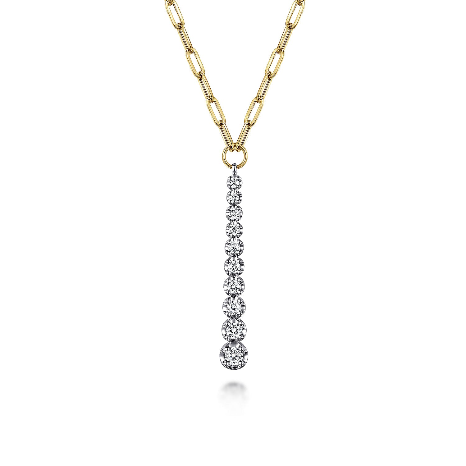 14K White and Yellow Gold Diamond Vertical Bar Link Necklace
