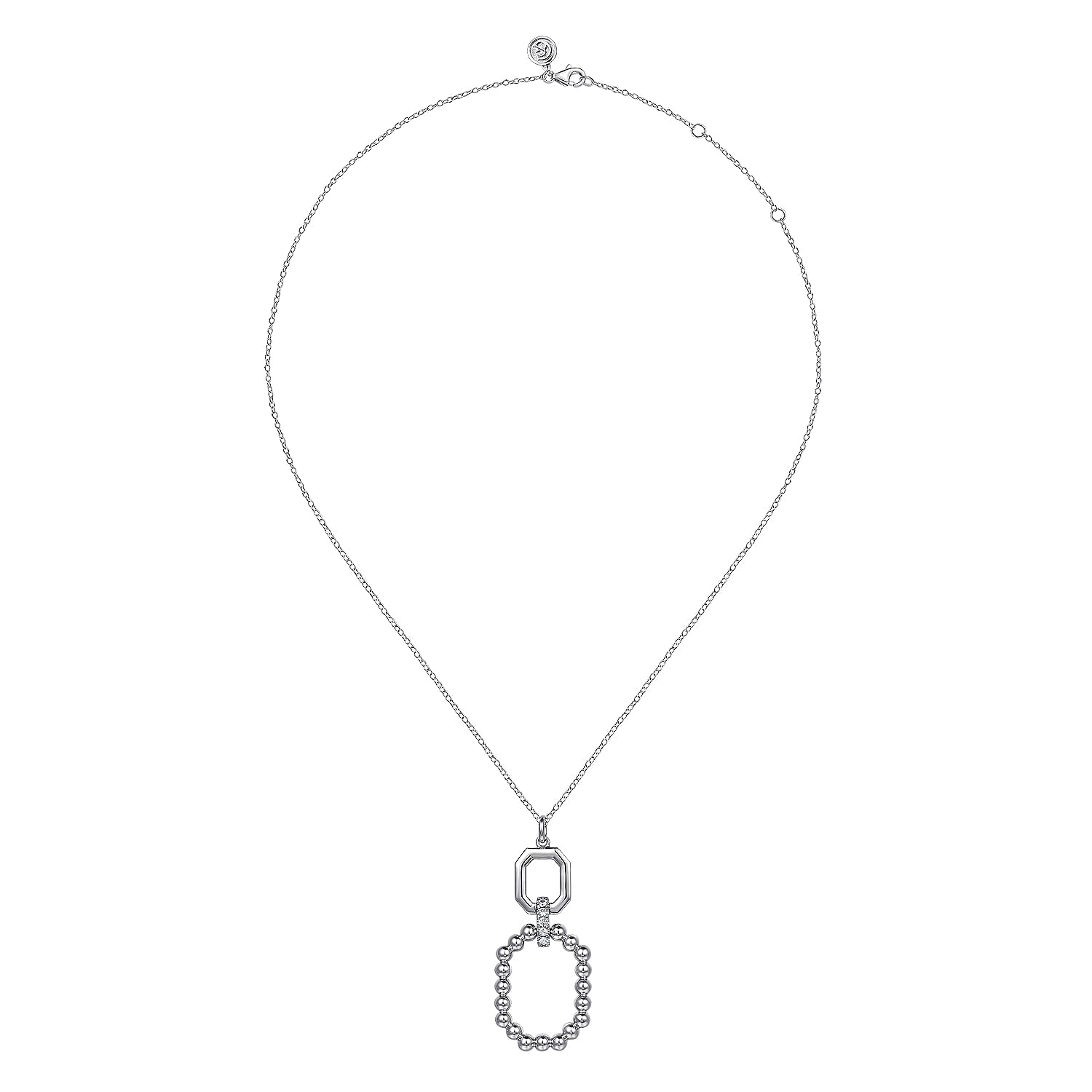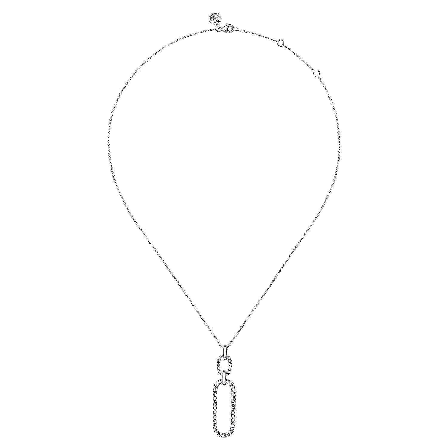 14K White Gold Diamond Link Chain Drop Pendant Necklace