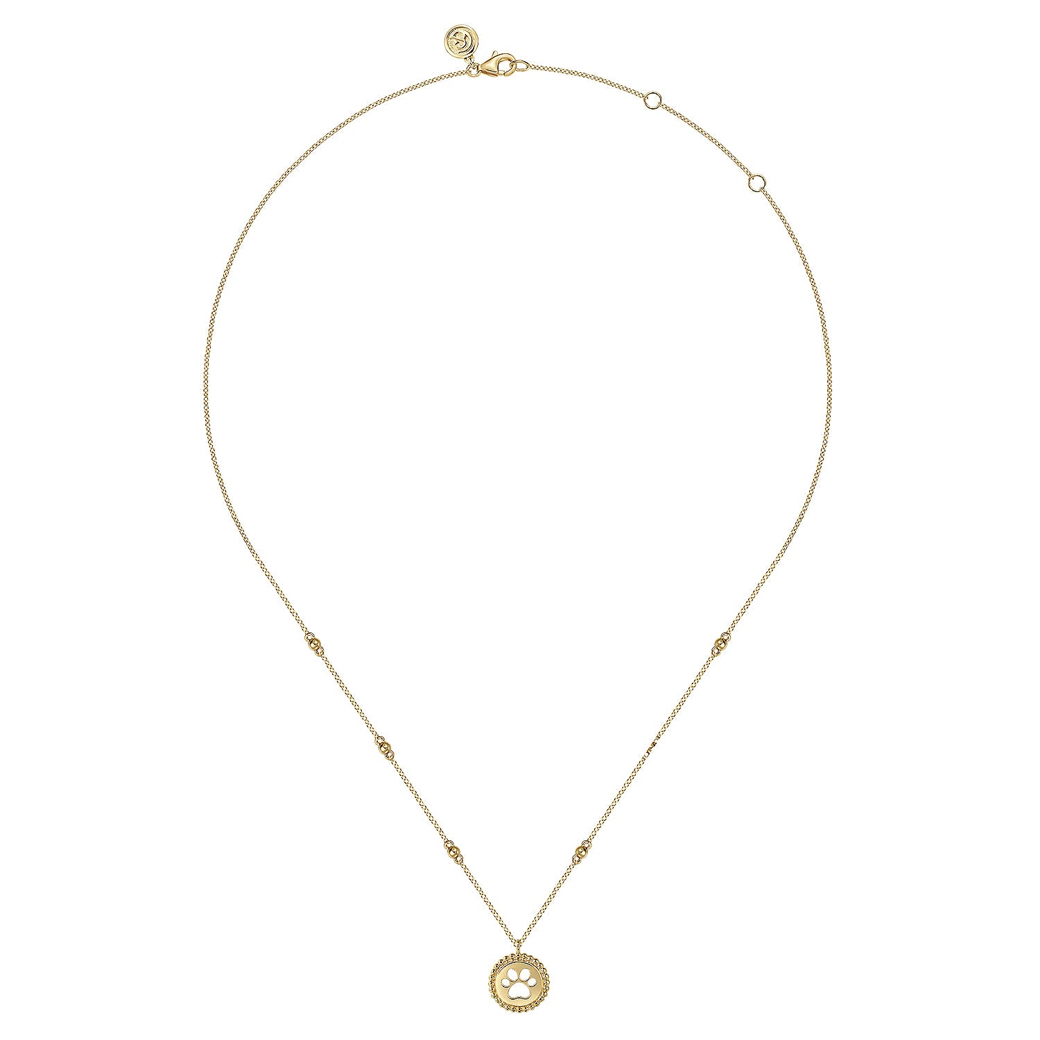 14K Yellow Plain Gold Bujukan Dog Paw Medallion Necklace