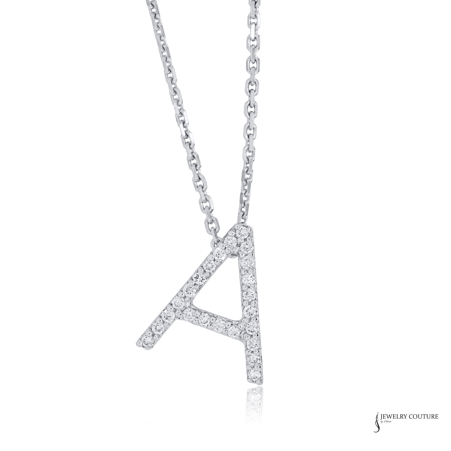 14K White Gold Diamond Letter “A” Necklace – Initial Pendant with 18” Chain