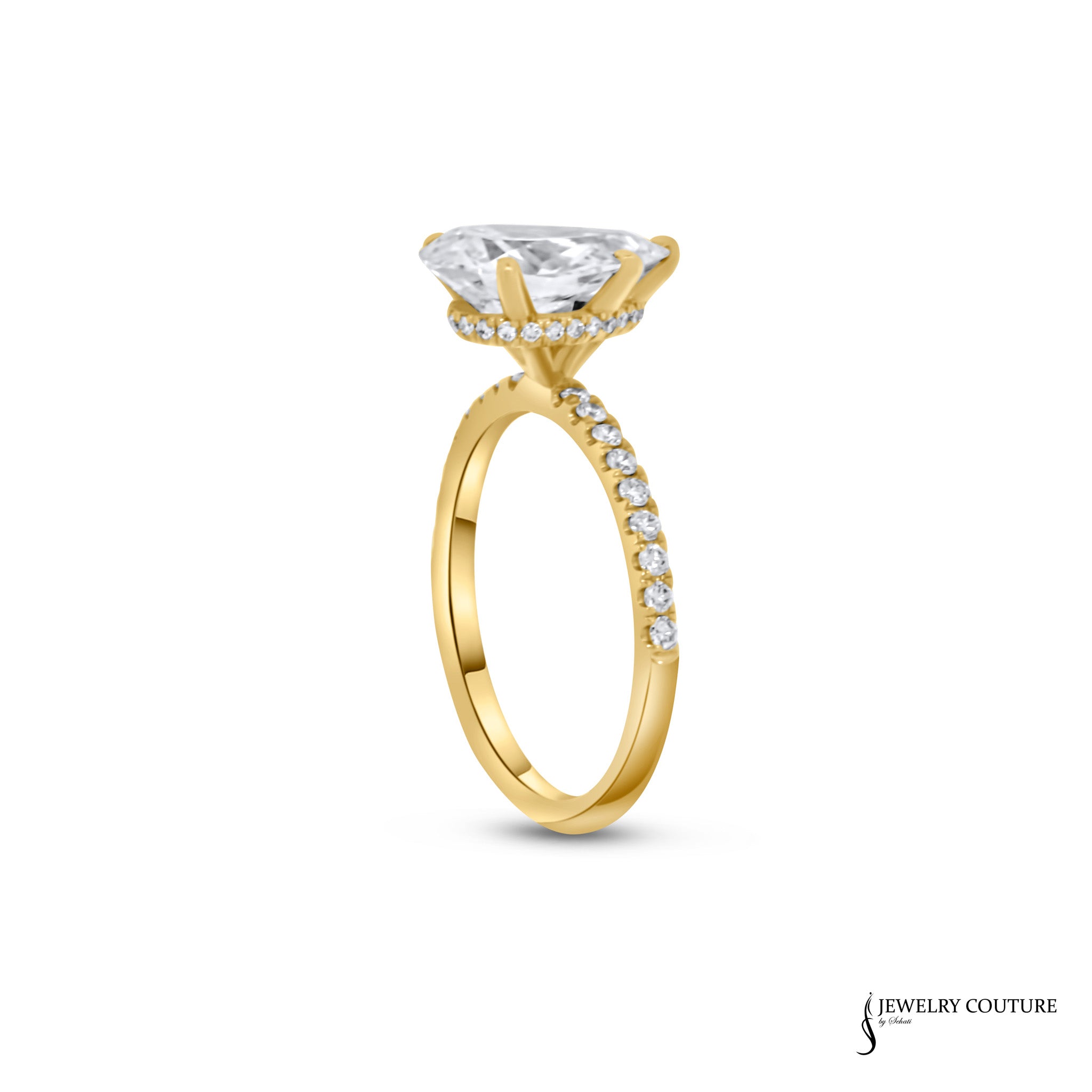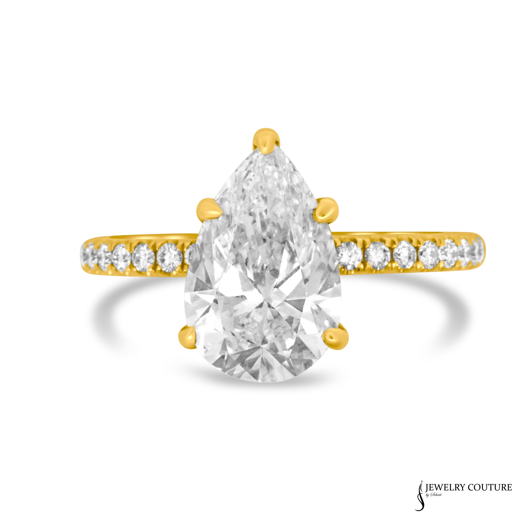 14KT Yellow Gold Lab Grown Pear Diamond with Natural Diamond Halo