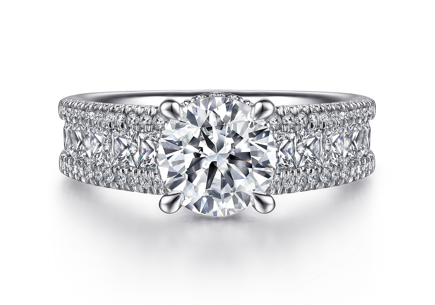 Deisha - 14K White Gold Split Shank Round Diamond Engagement Ring