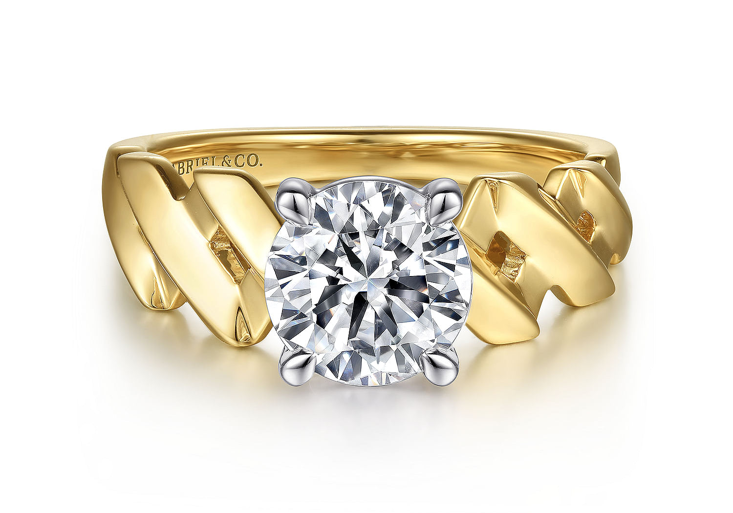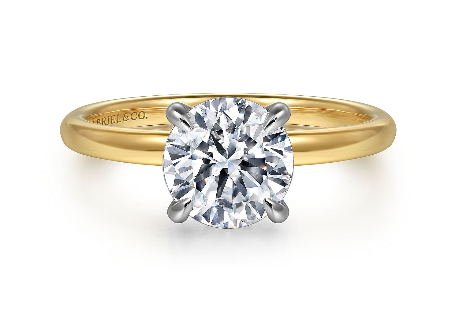 Grasey - 14K White & Yellow Gold Round Solitaire Engagement Ring