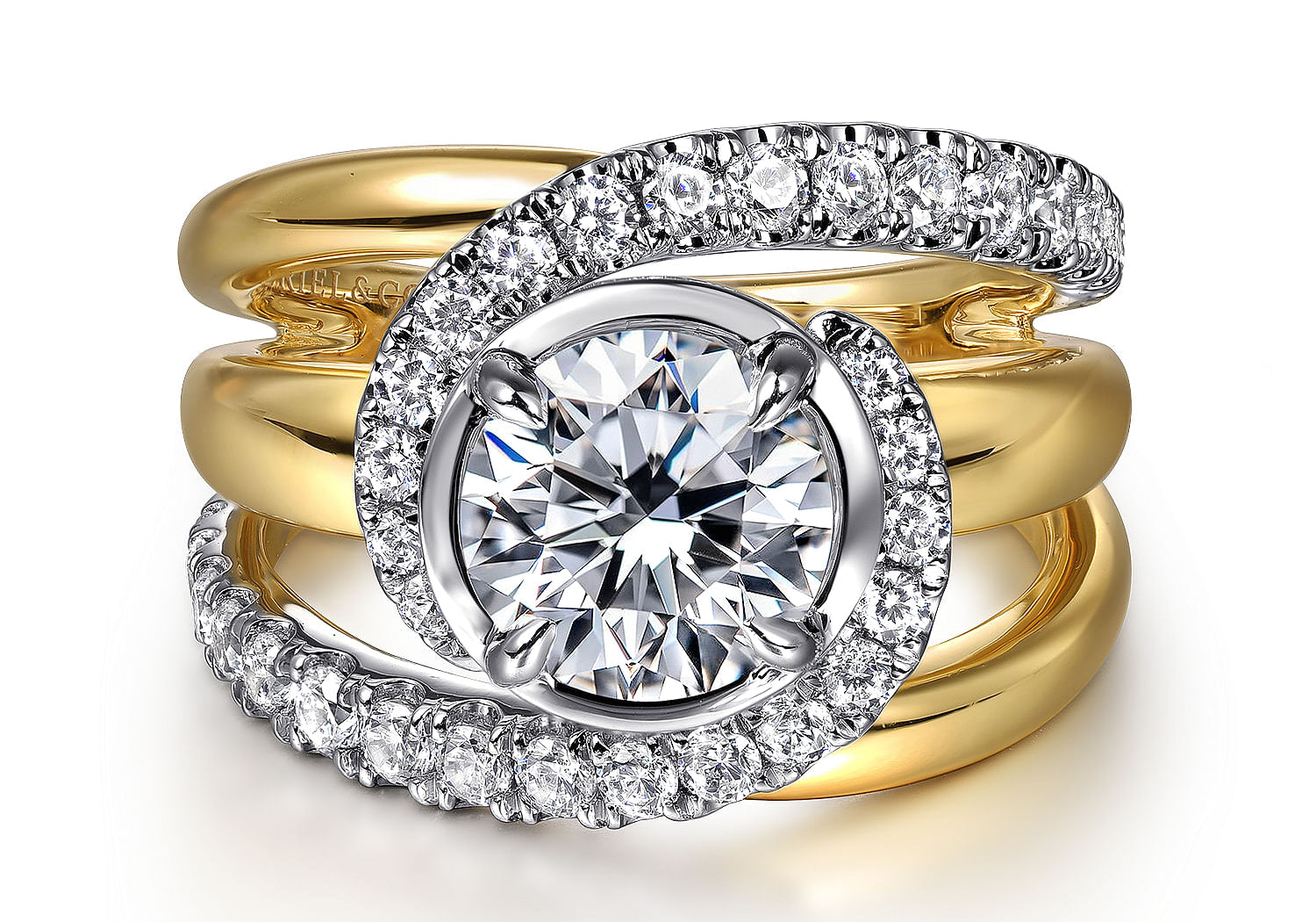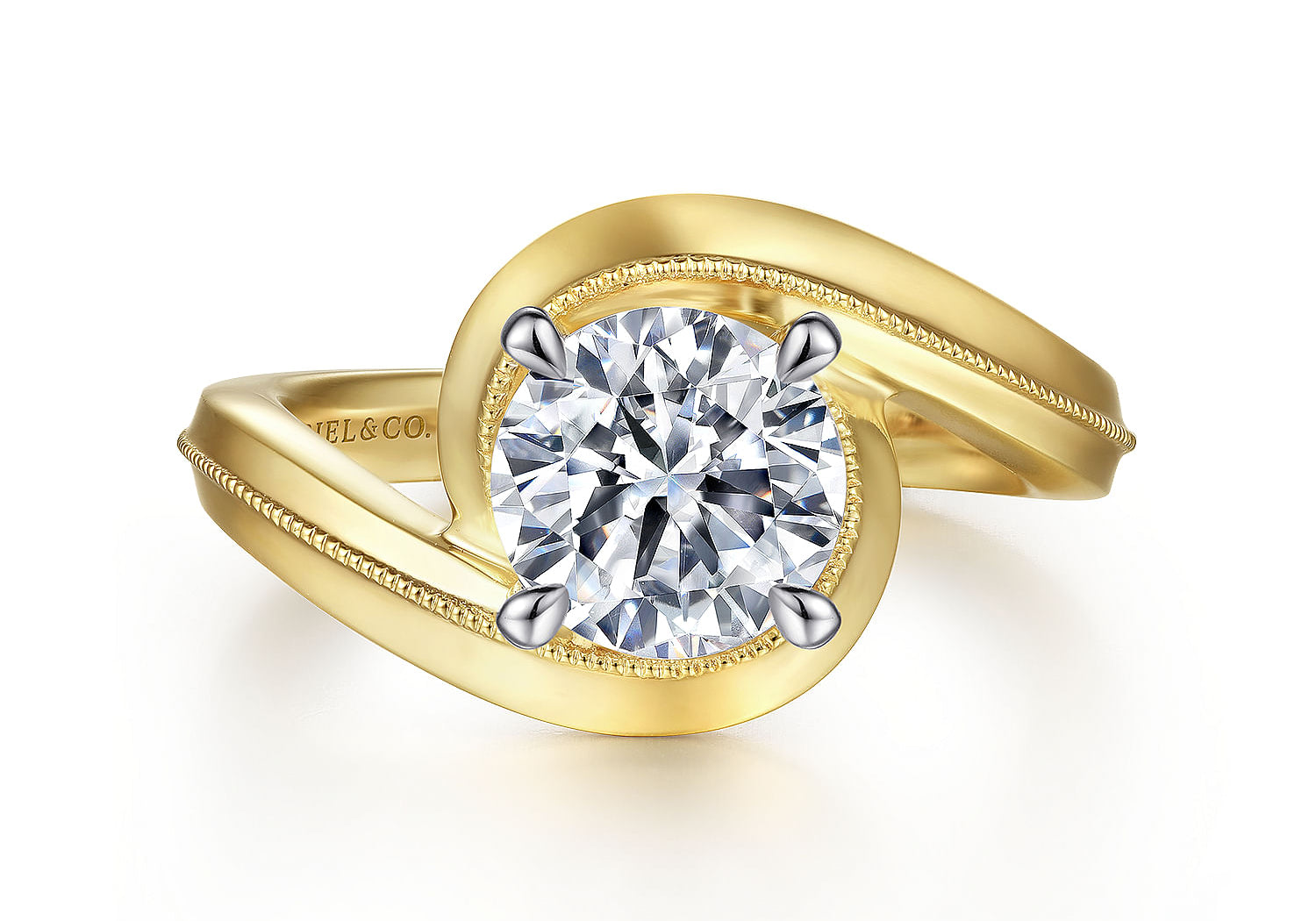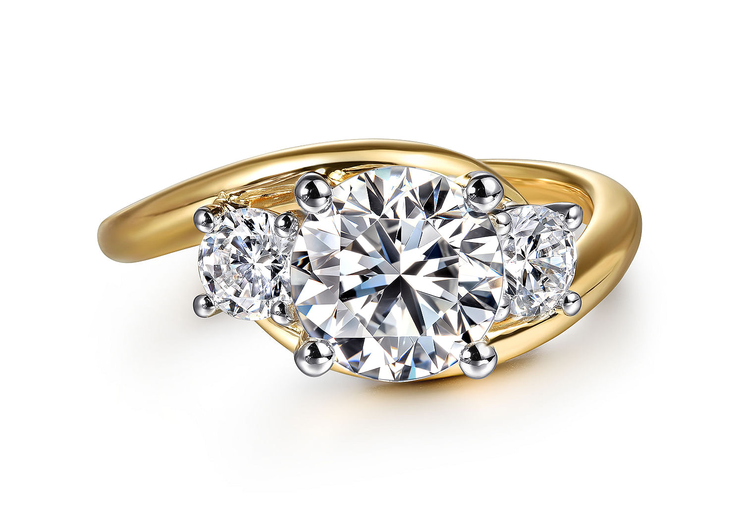Ezrah - 14K White-Yellow Gold Bypass Round Diamond Engagement Ring