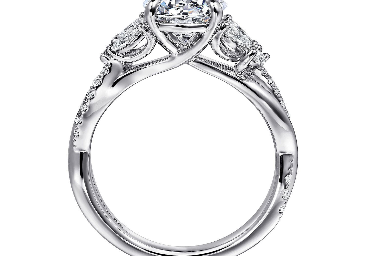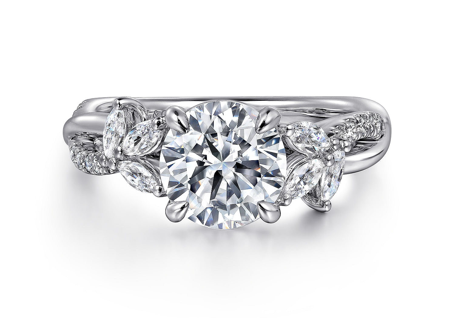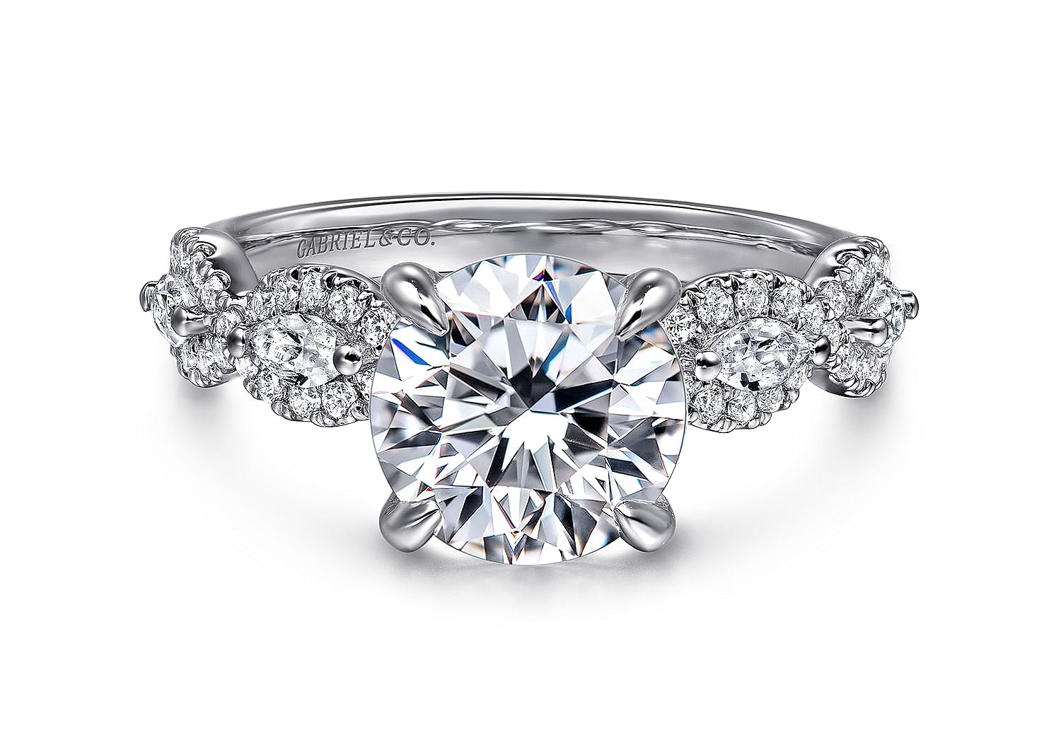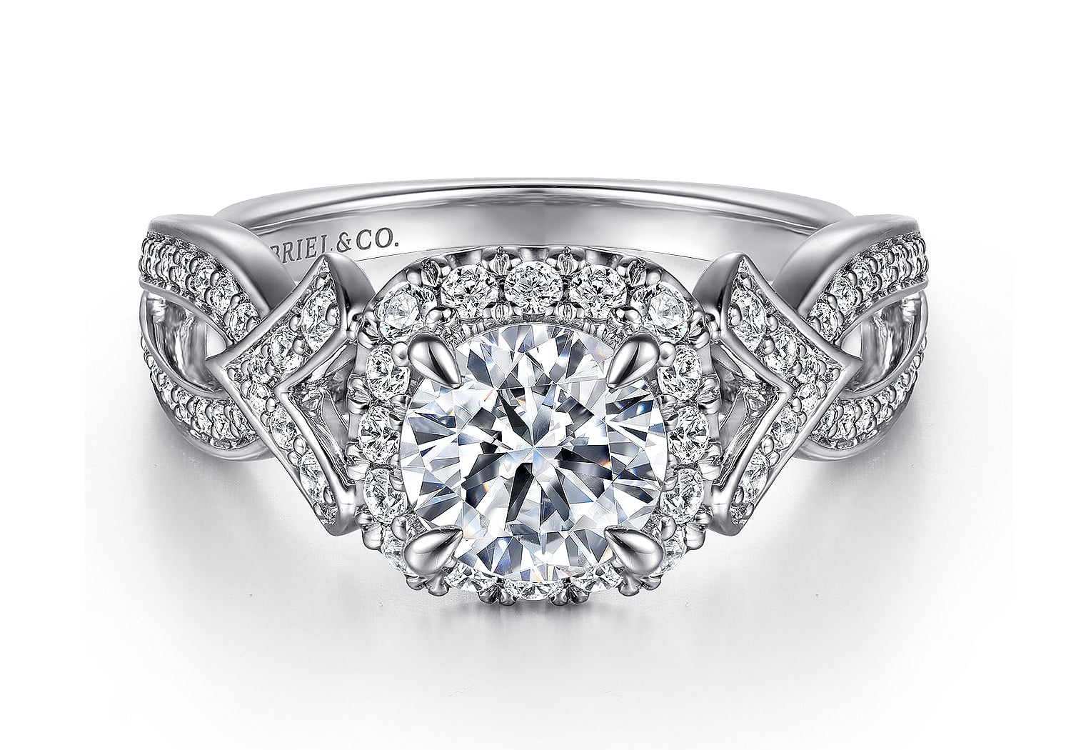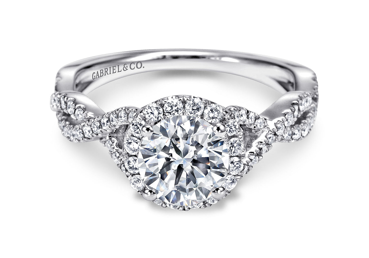 Charlotte - 14K White Gold Twisted Round Diamond Engagement Ring