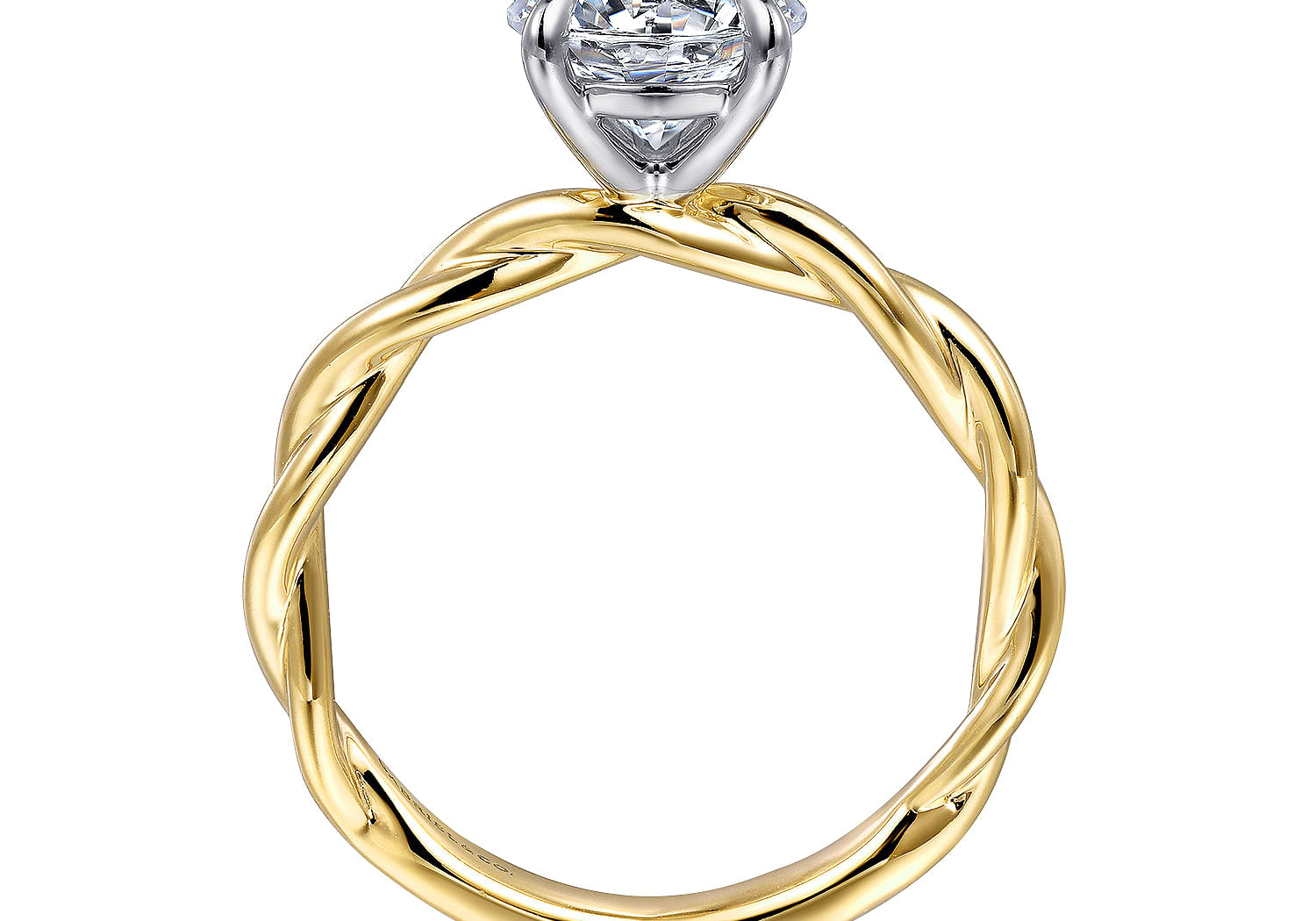 Emersin - 14K White-Yellow Gold Twisted Round Diamond Engagement Ring