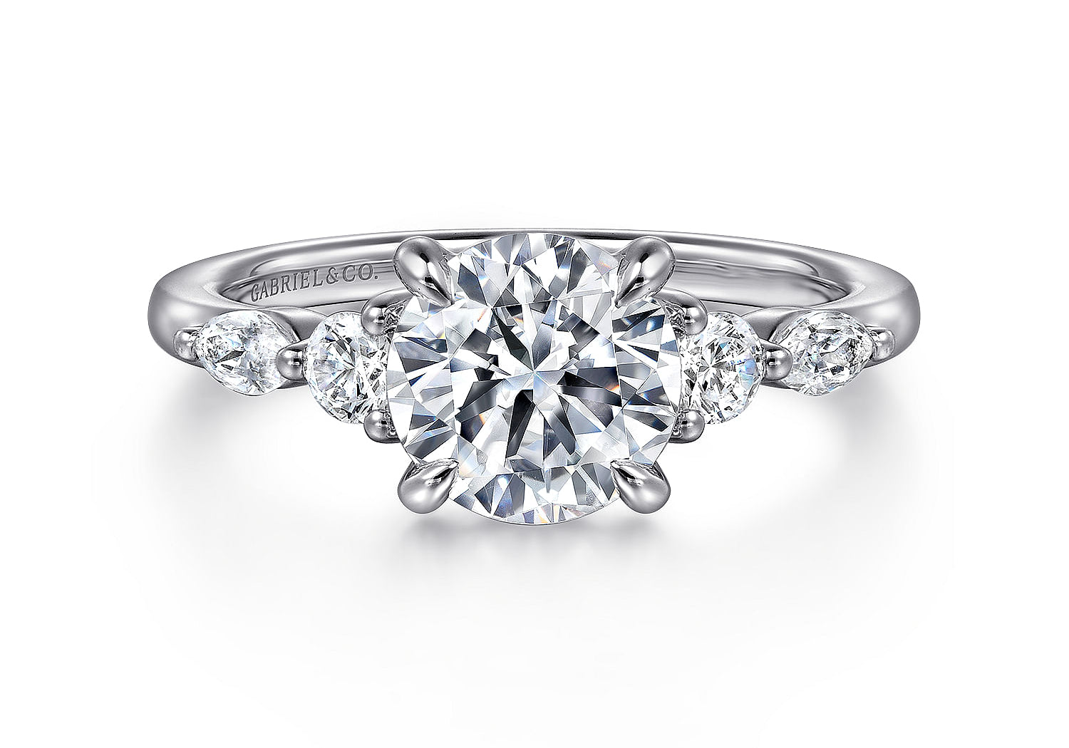 Cian - 14K White Gold Round Five Stone Diamond Engagement Ring