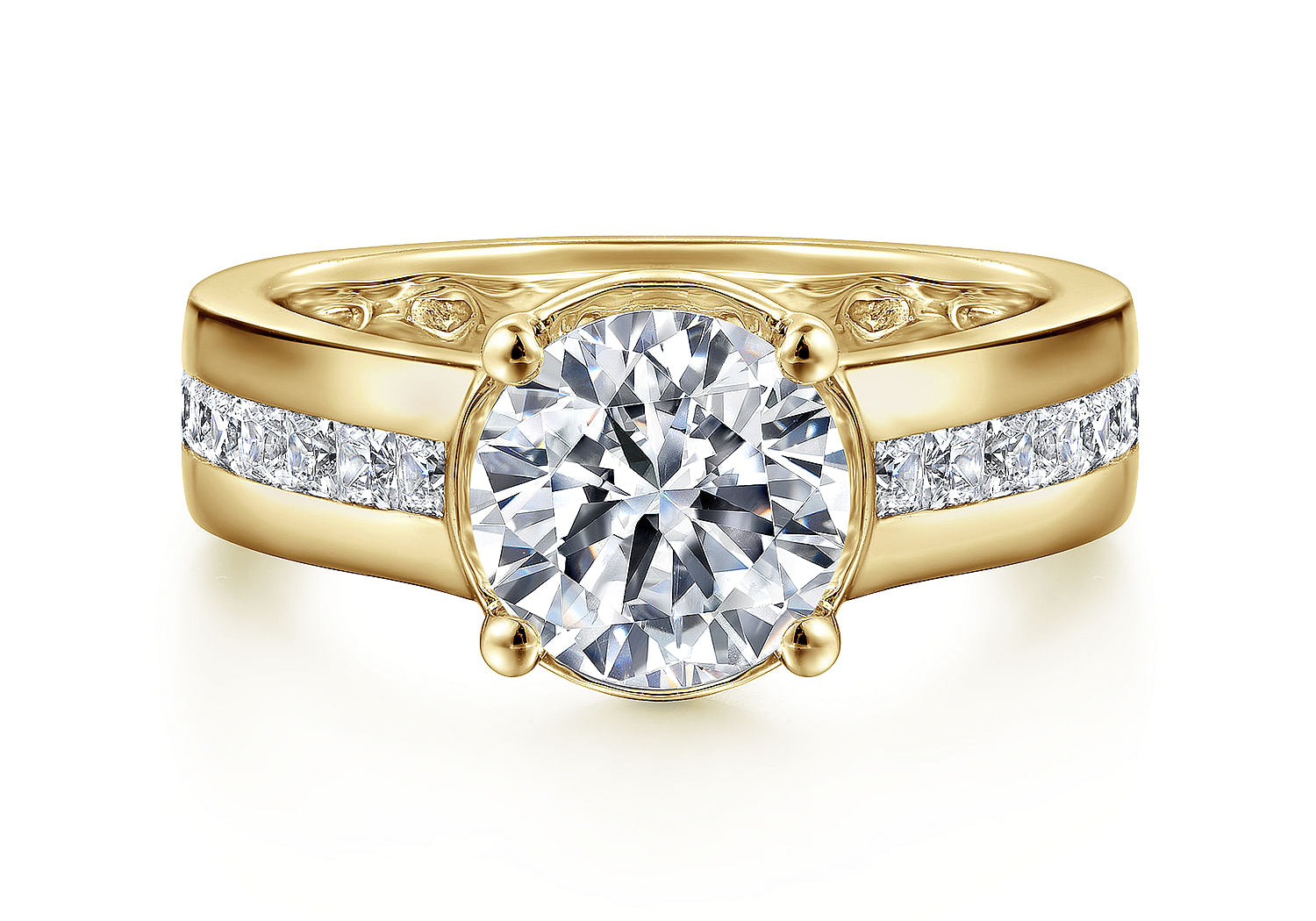 Dennise - 14K Yellow Gold Wide Band Round Diamond Engagement Ring