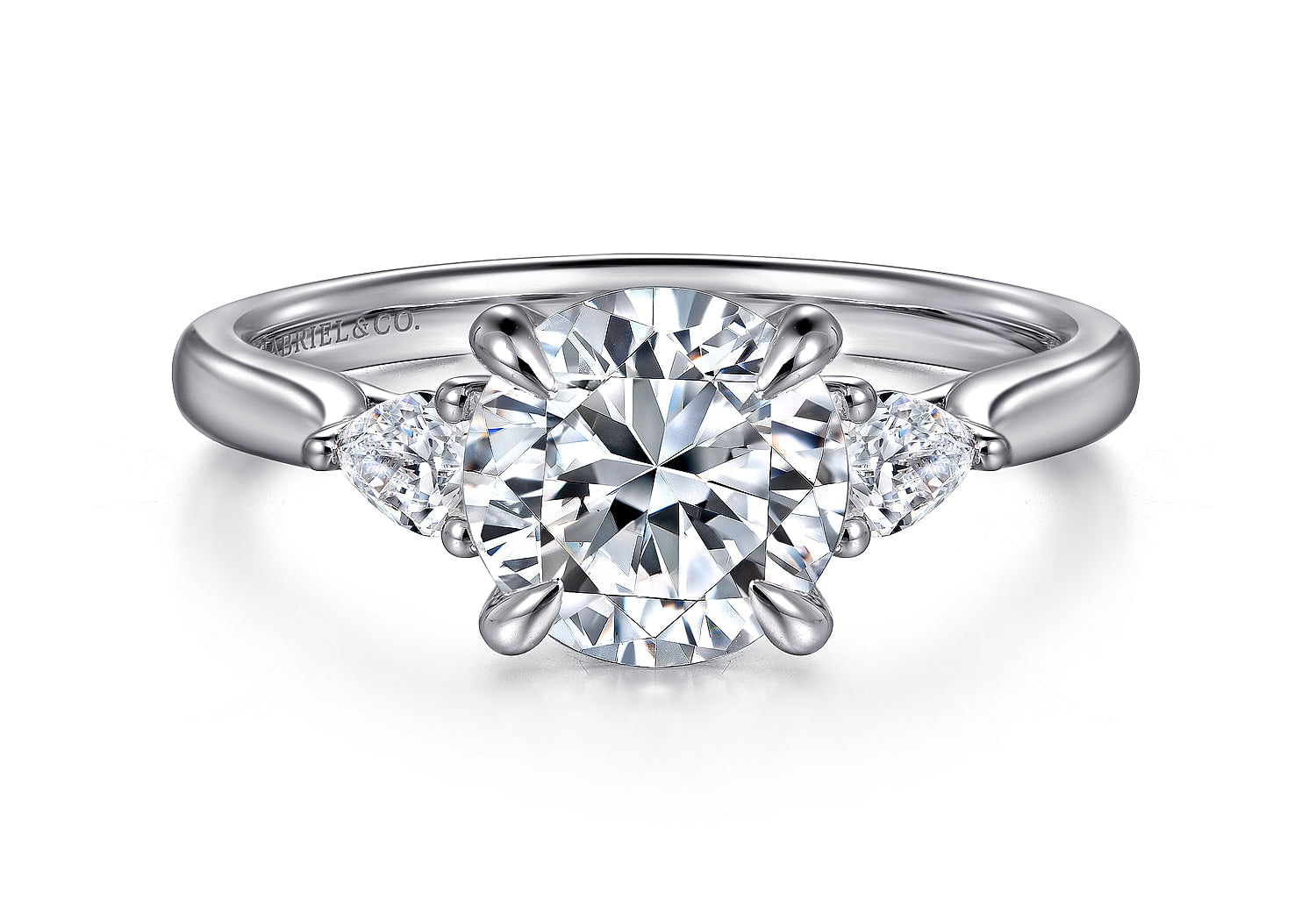 Ebony - 14K White Gold Round Three Stone Diamond Engagement Ring
