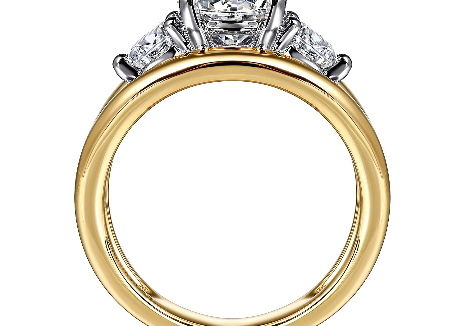 Elin - 14K White-Yellow Gold Round Three Stone Diamond Engagement Ring
