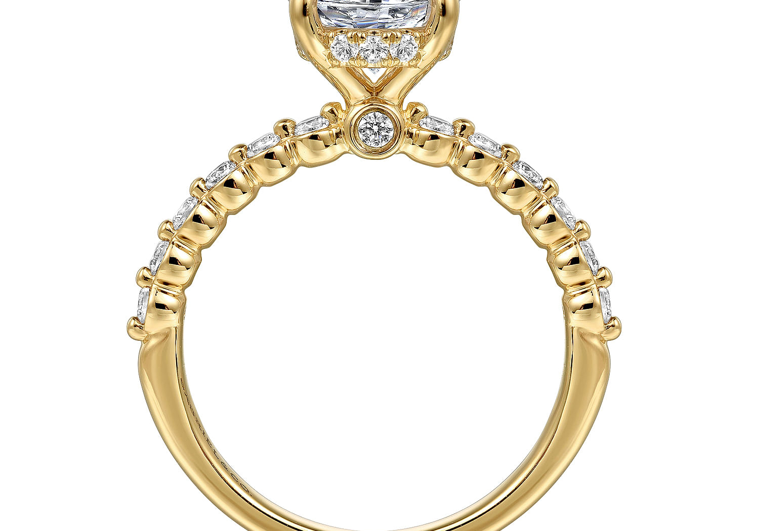 Diamond Solitaire Ring with Pavé Band 14K Yellow Gold