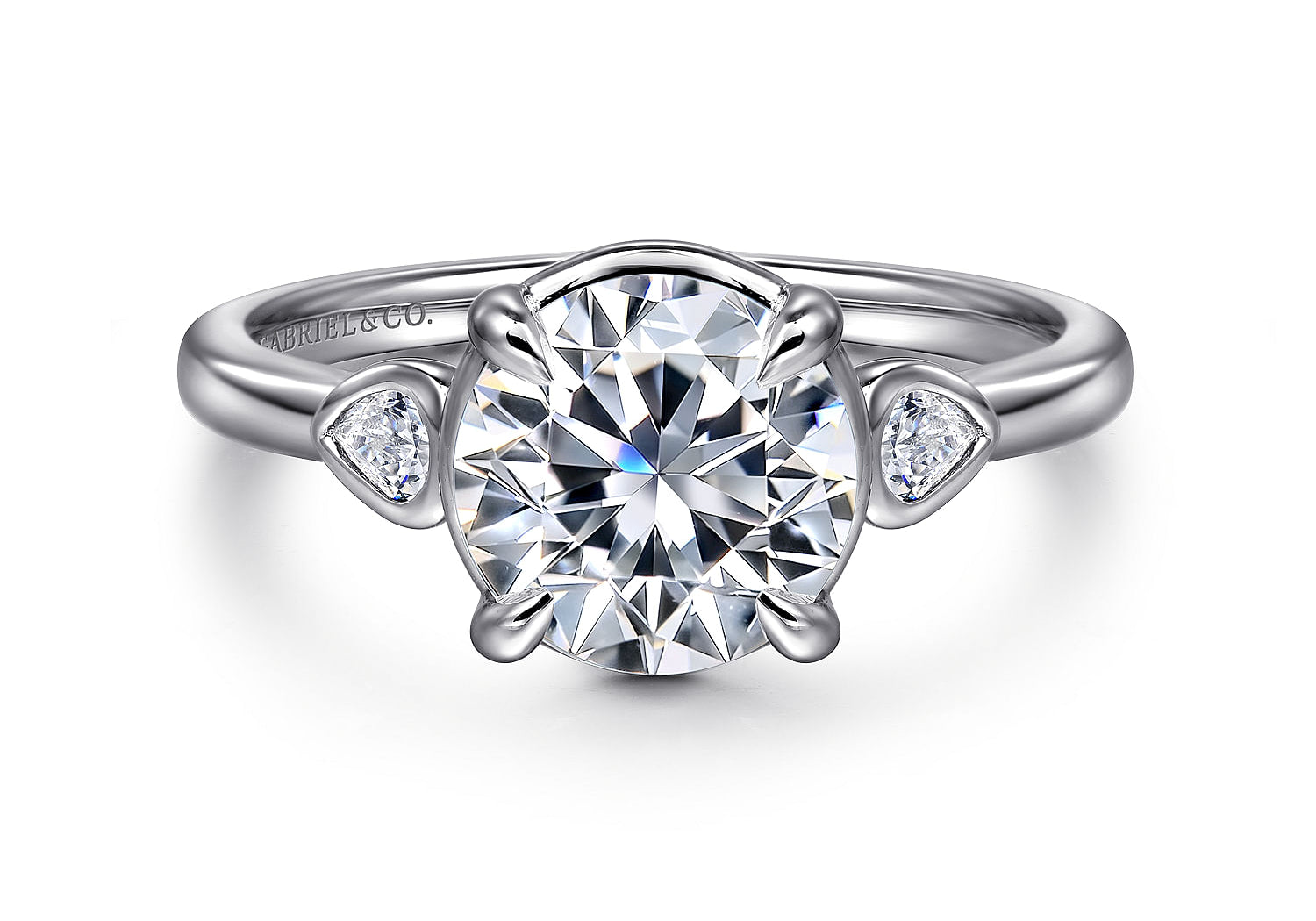 Monty - 14K White Gold Round Three Stone Lotus Diamond Engagement Ring In-Store