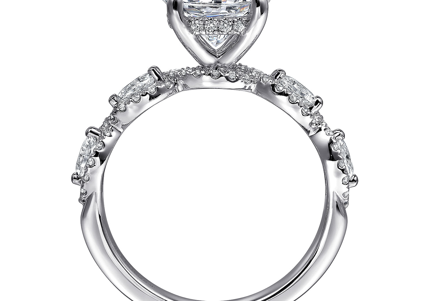 Elvette - 14K White Gold Hidden Halo Round Diamond Channel Set Engagement Ring