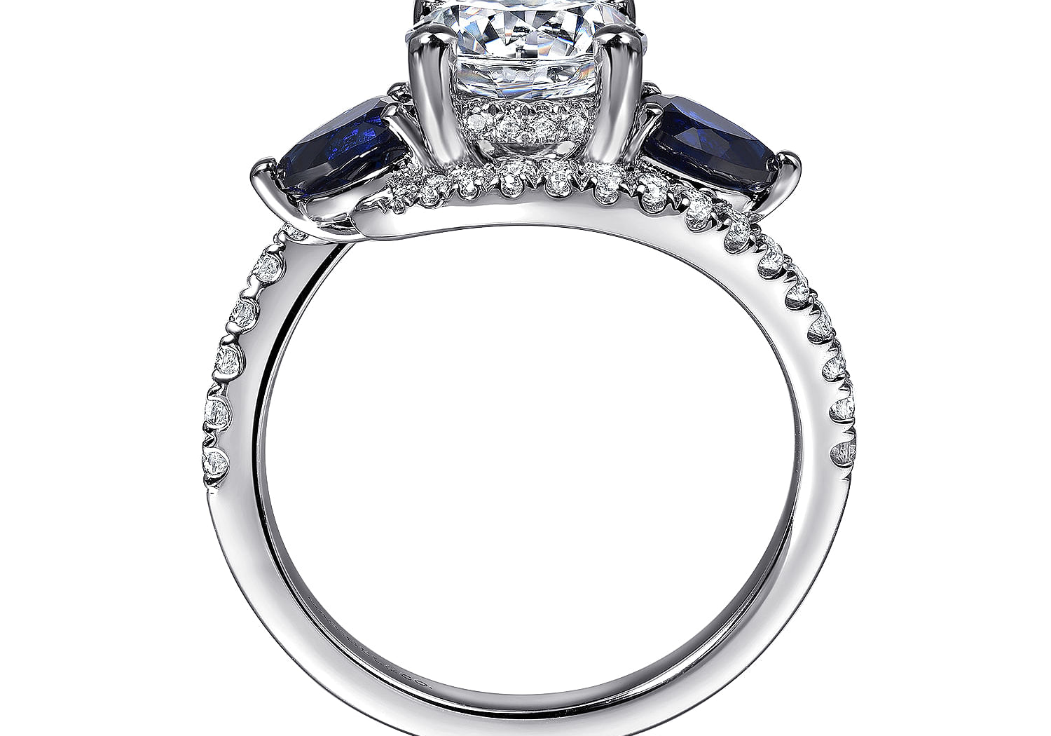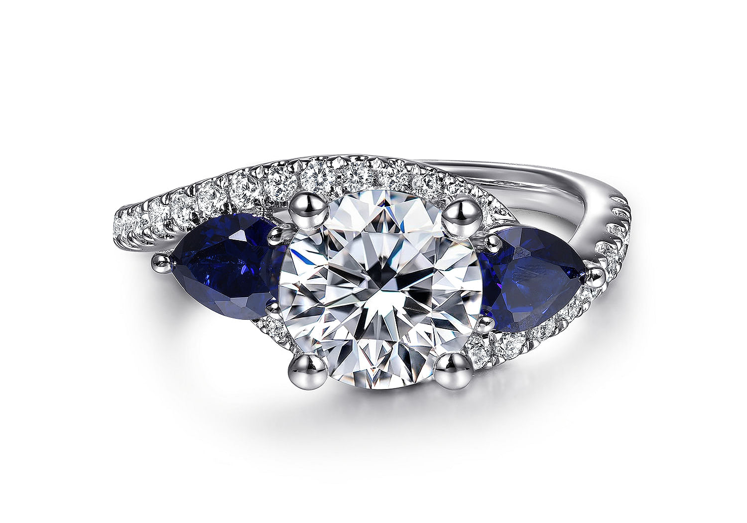 Estefania - 14K White Gold Round Three Stone Sapphire and Diamond Engagement Ring
