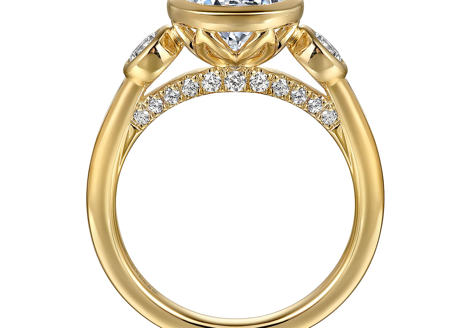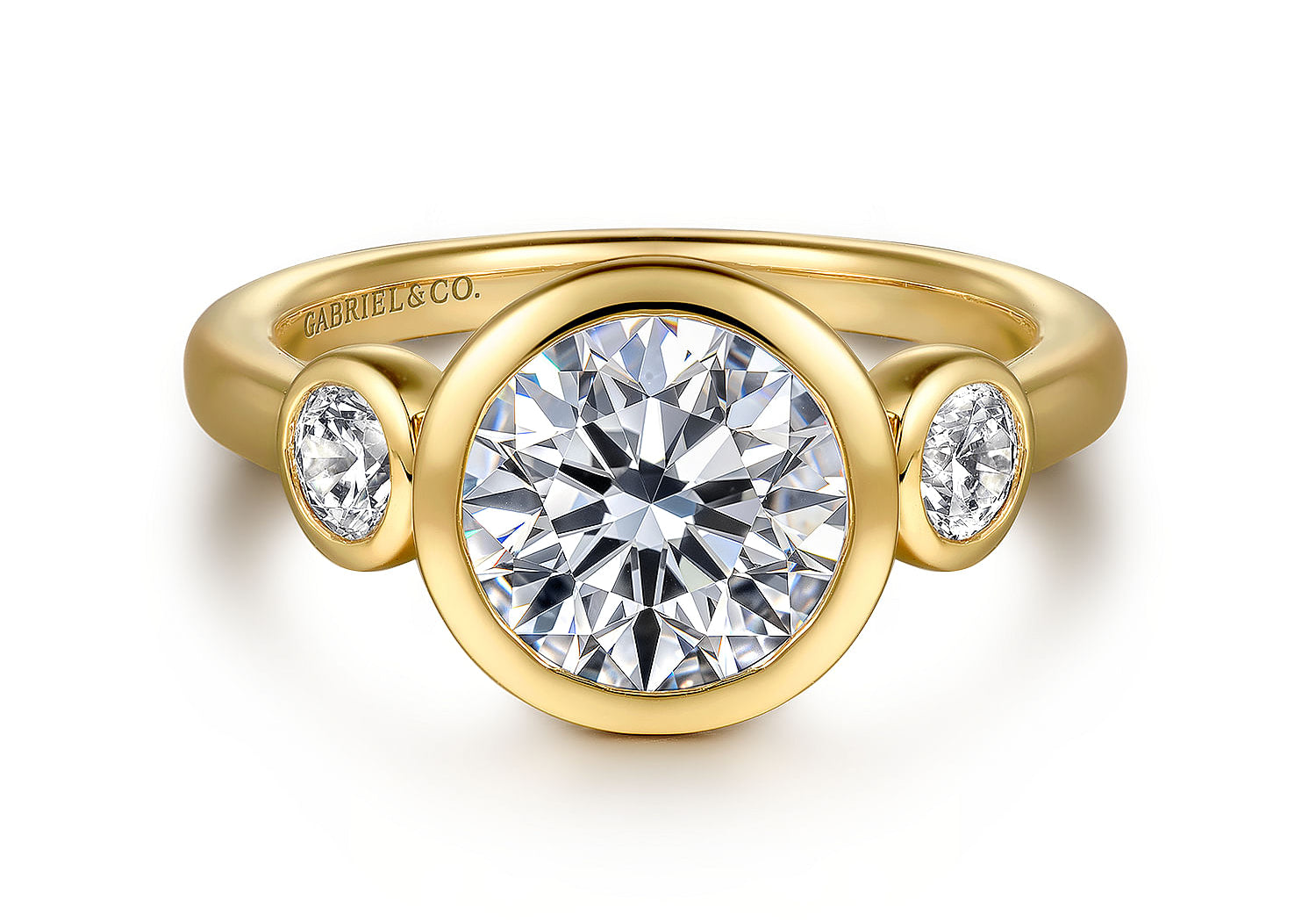 Henley - 14K Yellow Gold Round Three Stone Bezel Set Diamond Engagement Ring