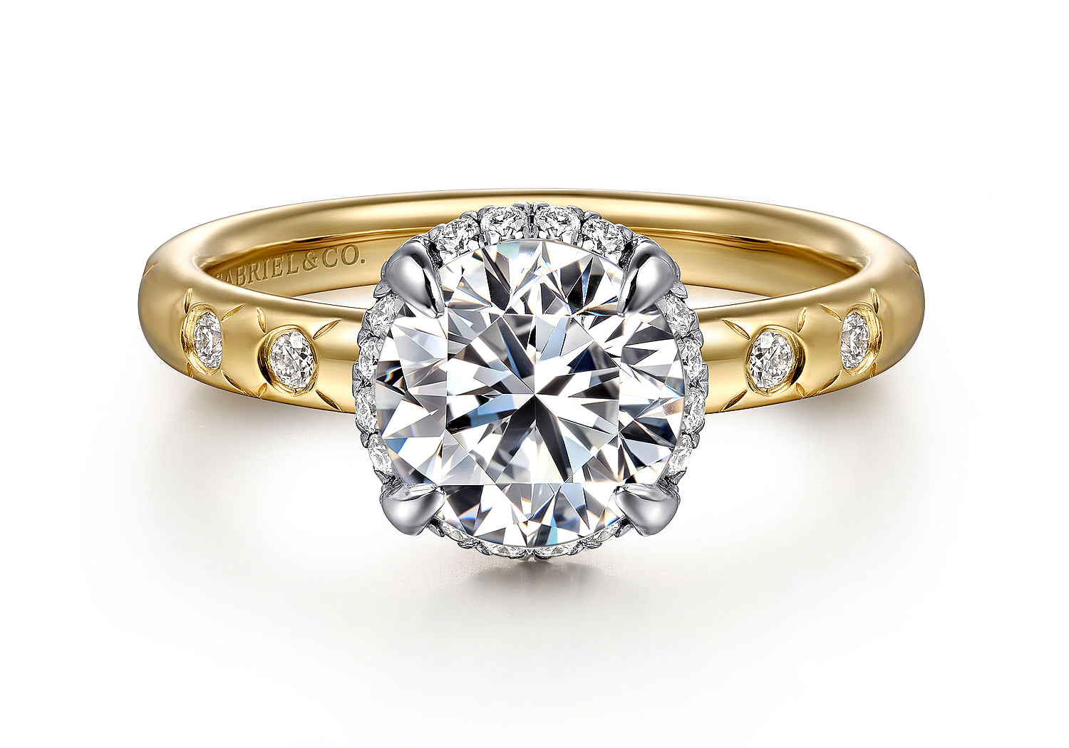 Nicky - 14K Yellow-White Gold Round Hidden Halo Diamond Engagement Ring