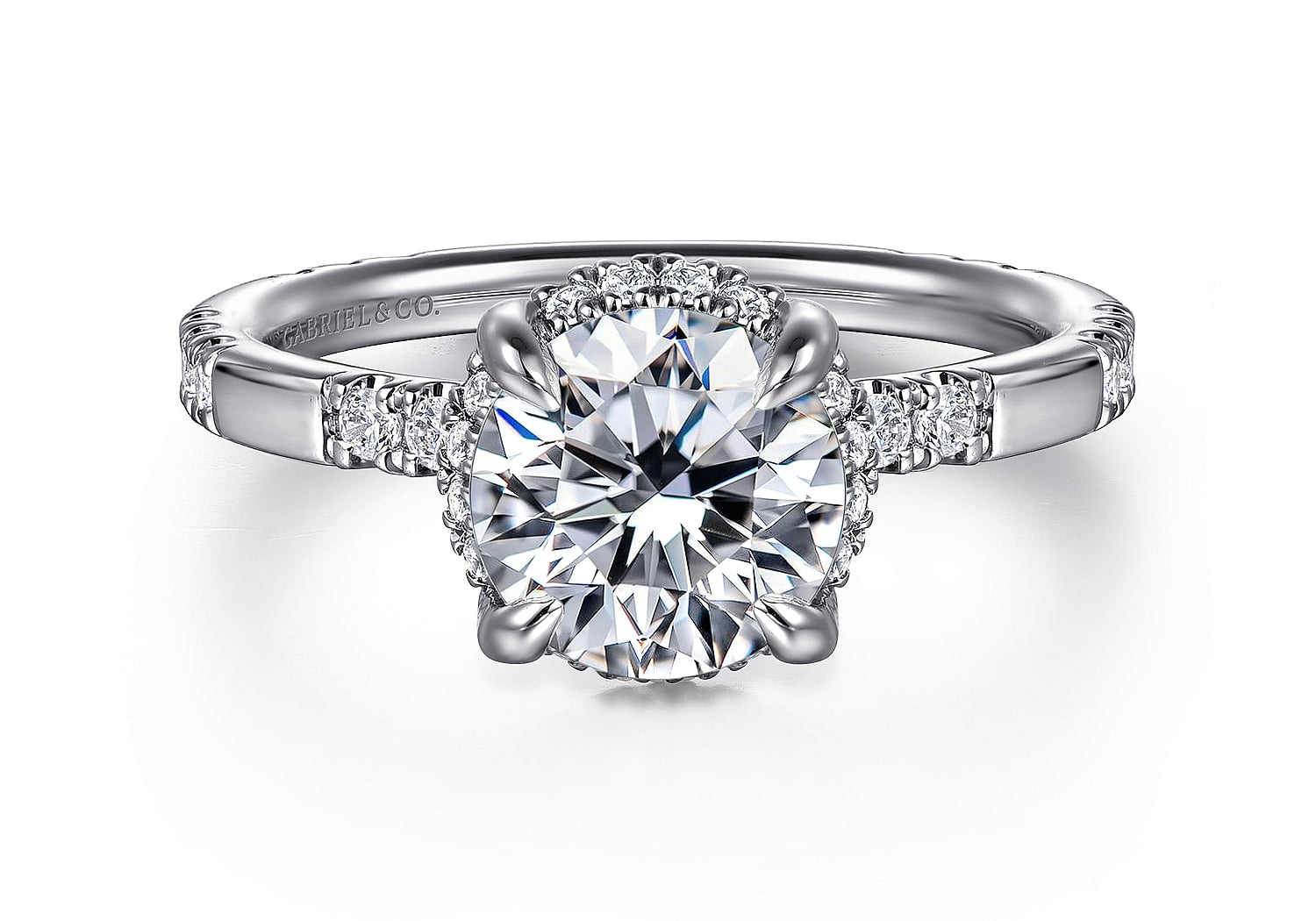 Ocean - 14K White Gold Round Hidden Halo Diamond Engagement Ring