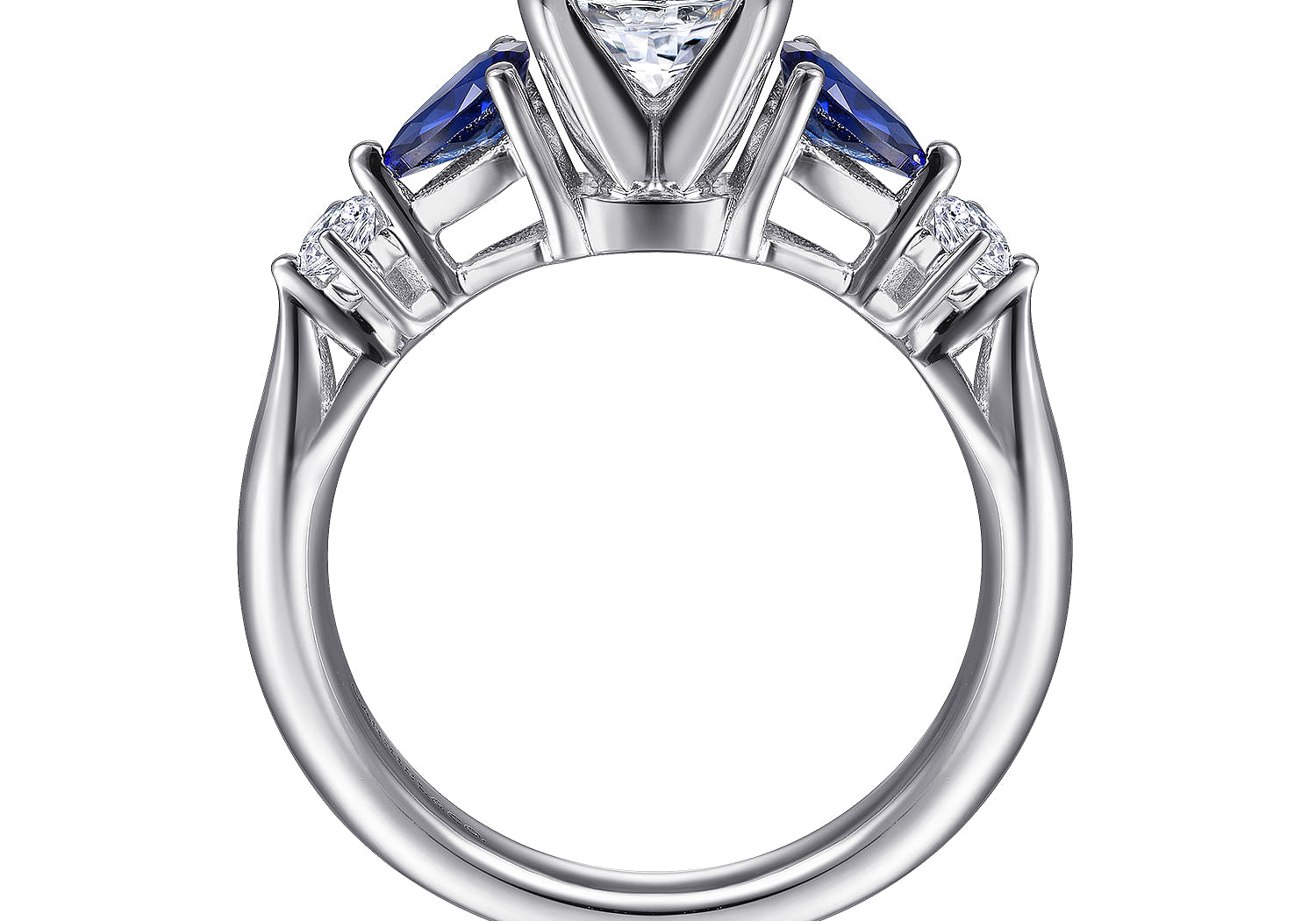 Carrie - 14K White Gold Round Five Stone Sapphire and Diamond Engagement Ring