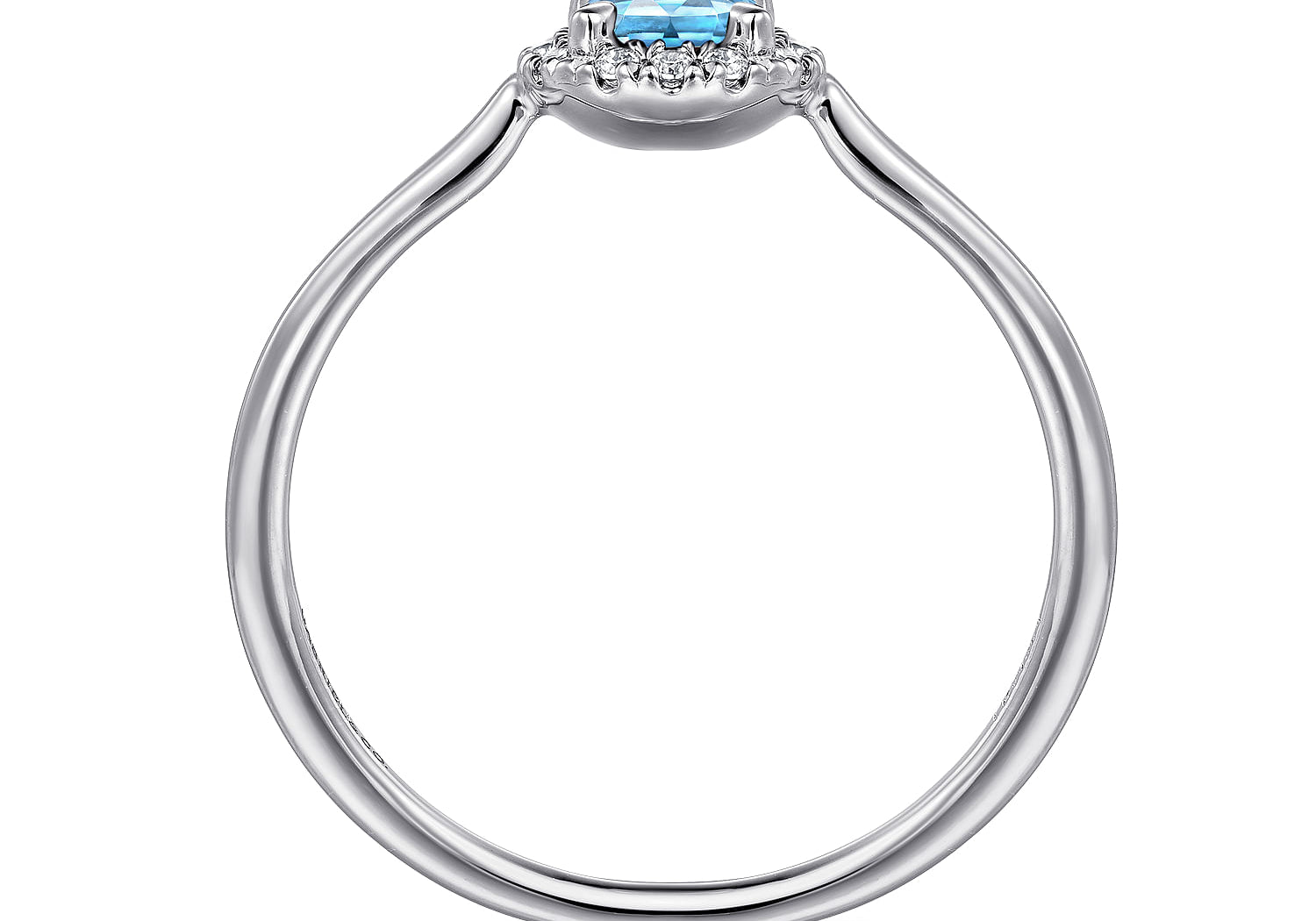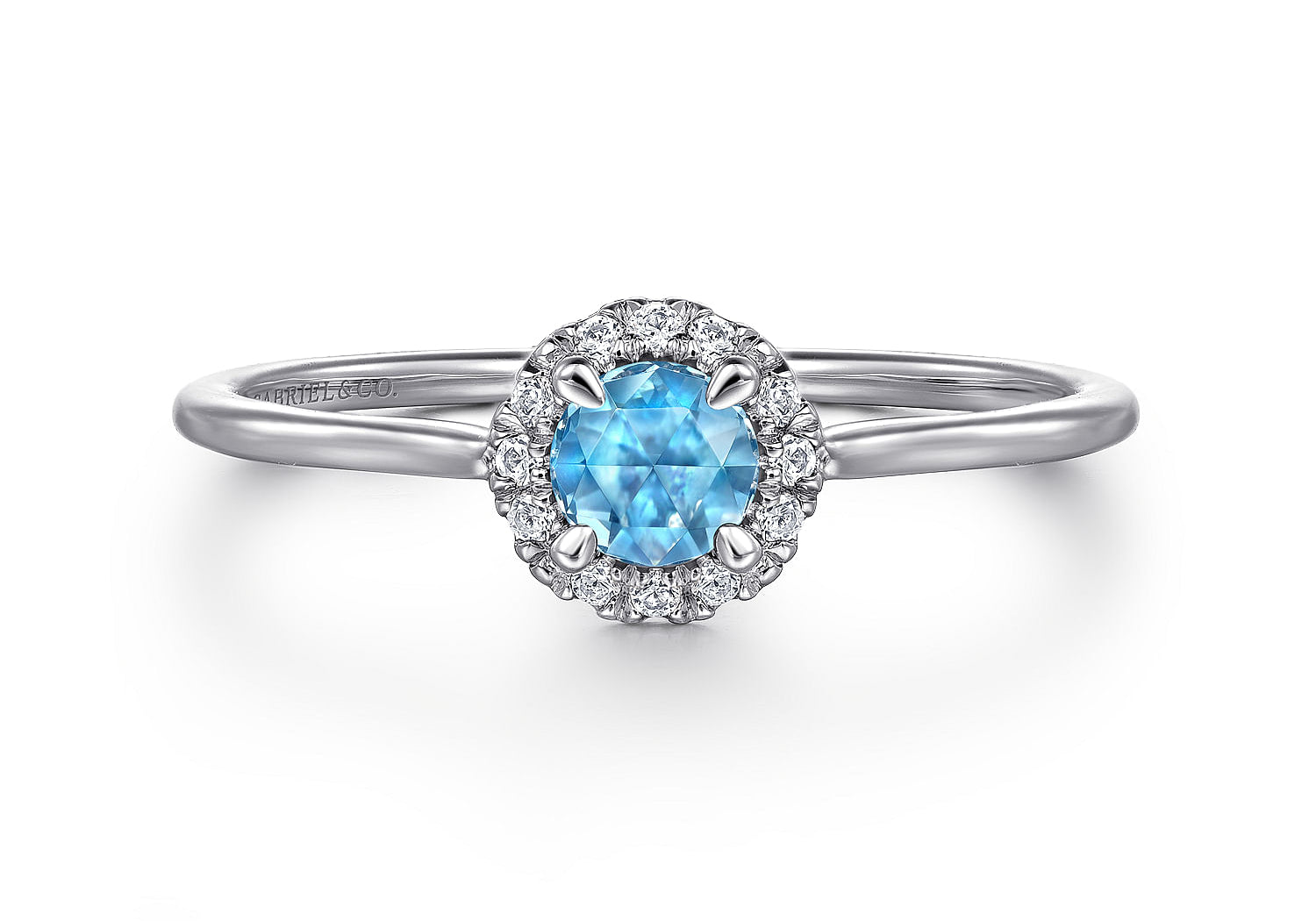 14K White Gold Blue Topaz and Diamond Halo Promise Ring