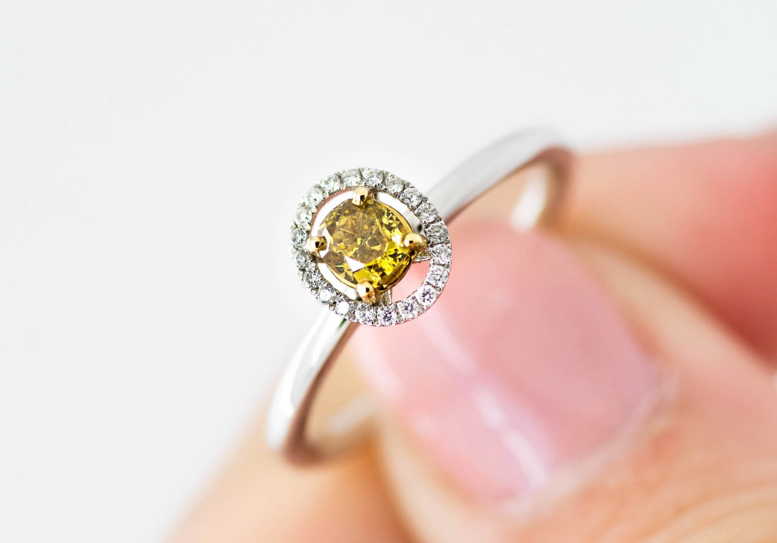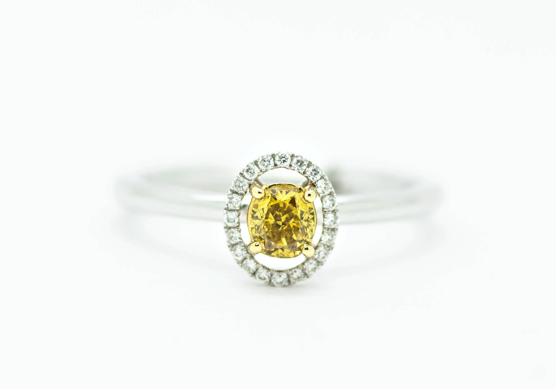Kalmia - 14KT White Gold Round Yellow Diamond Stackable Oval Halo Ring