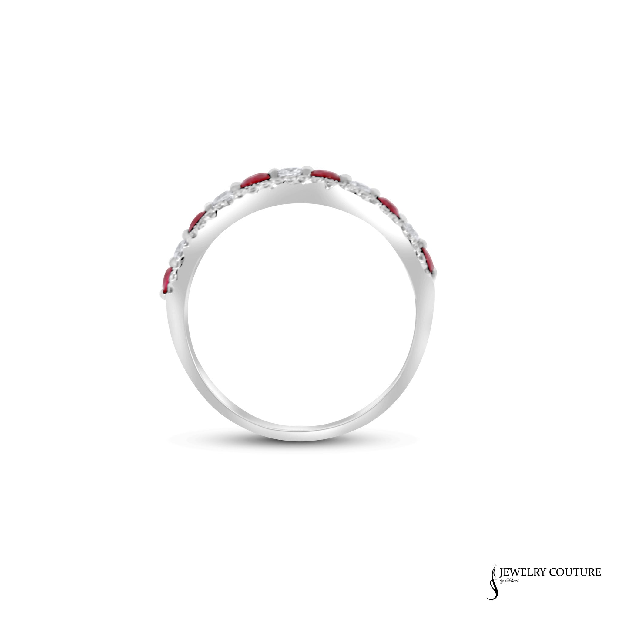 Ruby and Diamond Band Ring 18K White Gold with Diamond Accents, Size 6.7