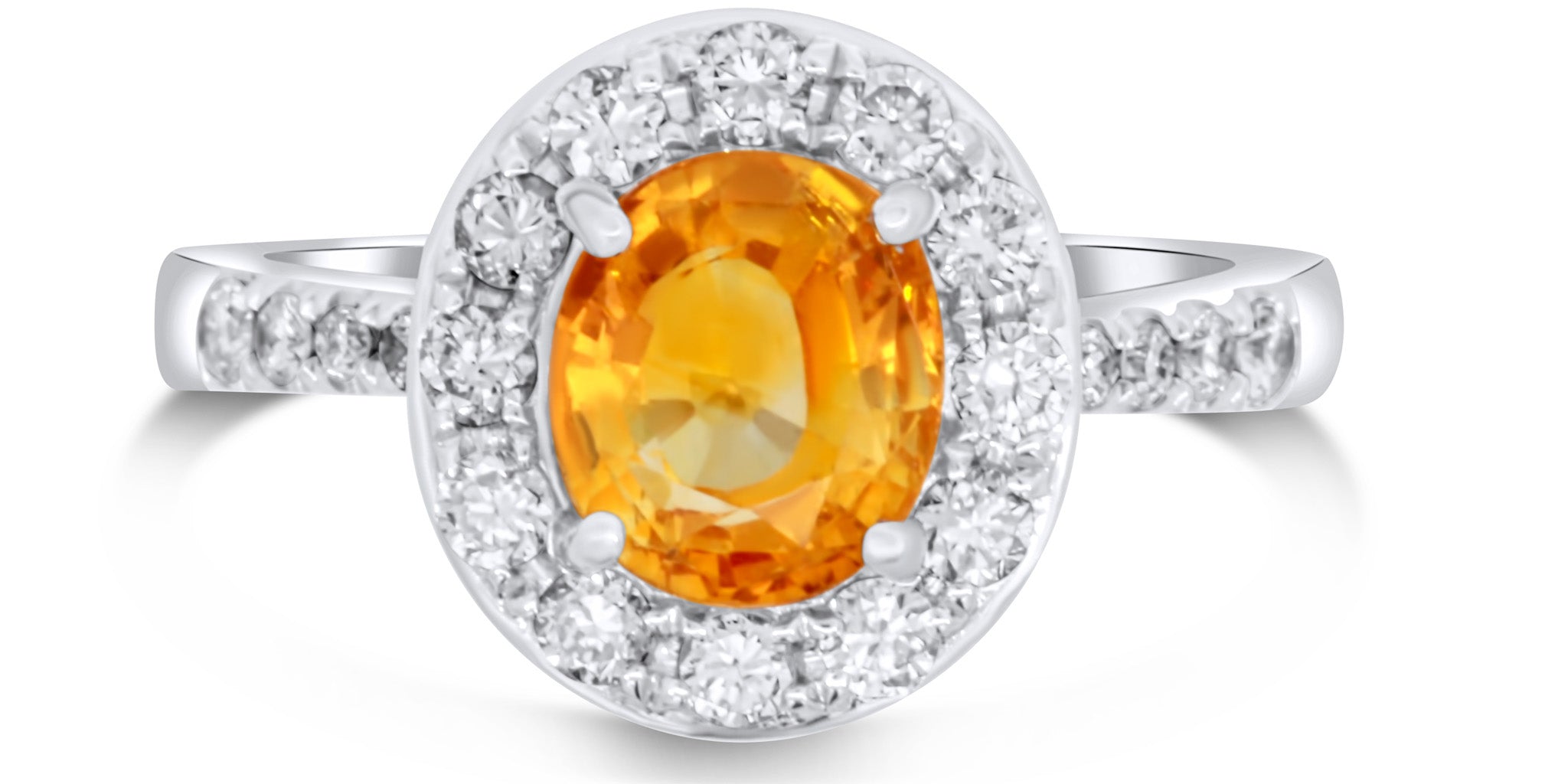 Cymbidium - 18KT White Gold Oval Orange Sapphire Ring