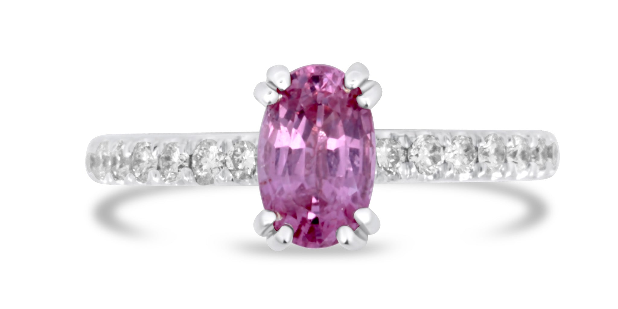 Chrysanthemum - 14KT White Gold and Pink Oval Sapphire