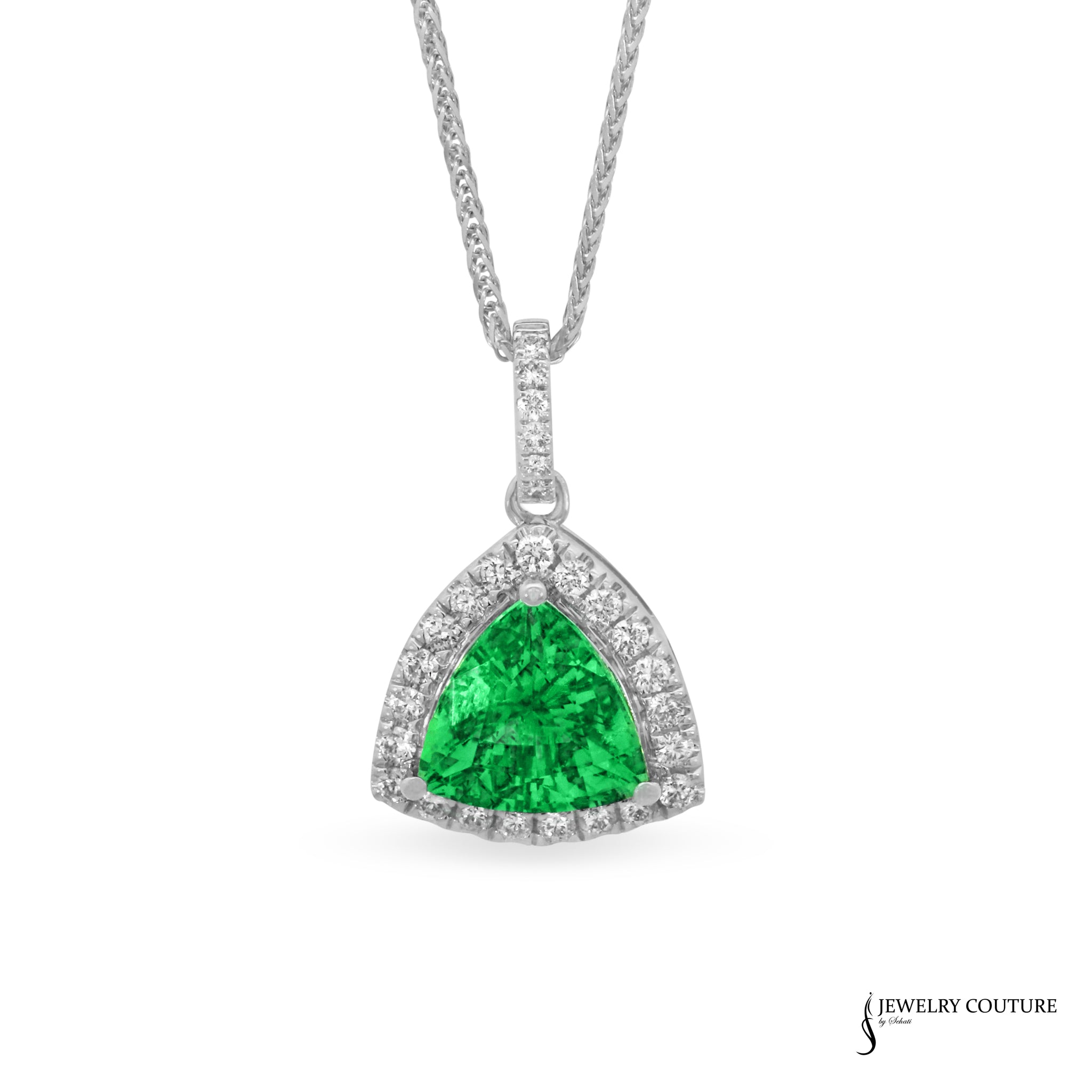 Myosotis - 14KT White Gold Trillion Tsavorite Halo Pendant