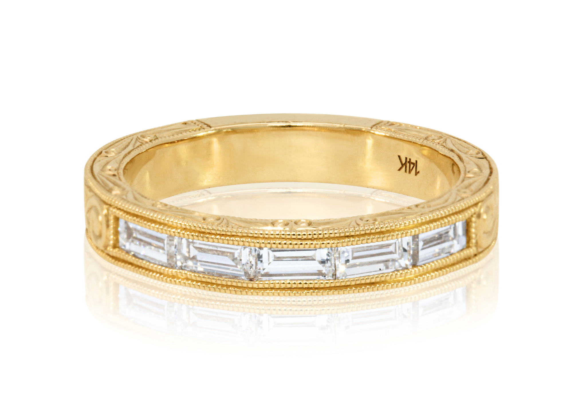 Bezel Set Diamond in High Polish Finish Wedding Band