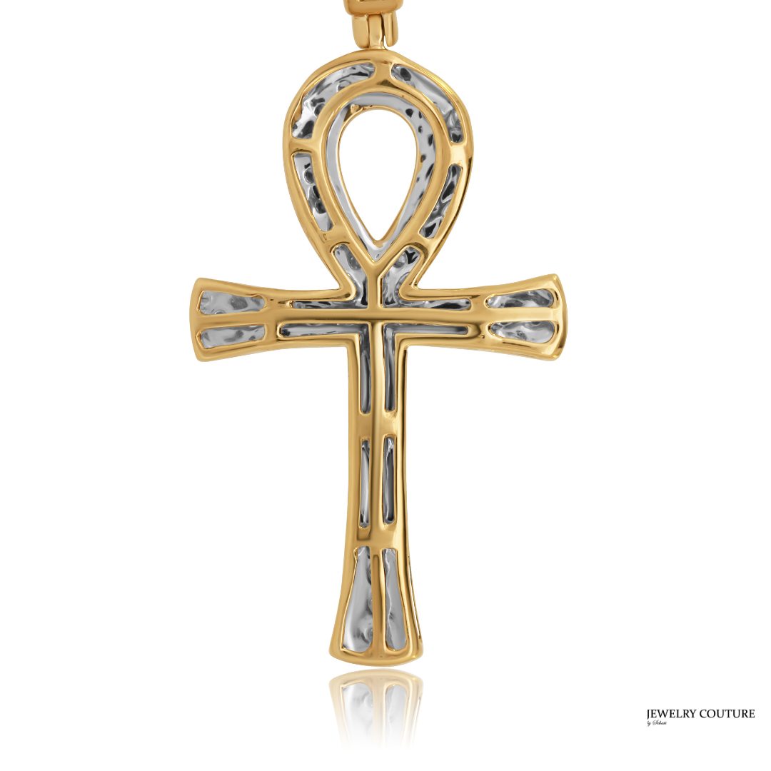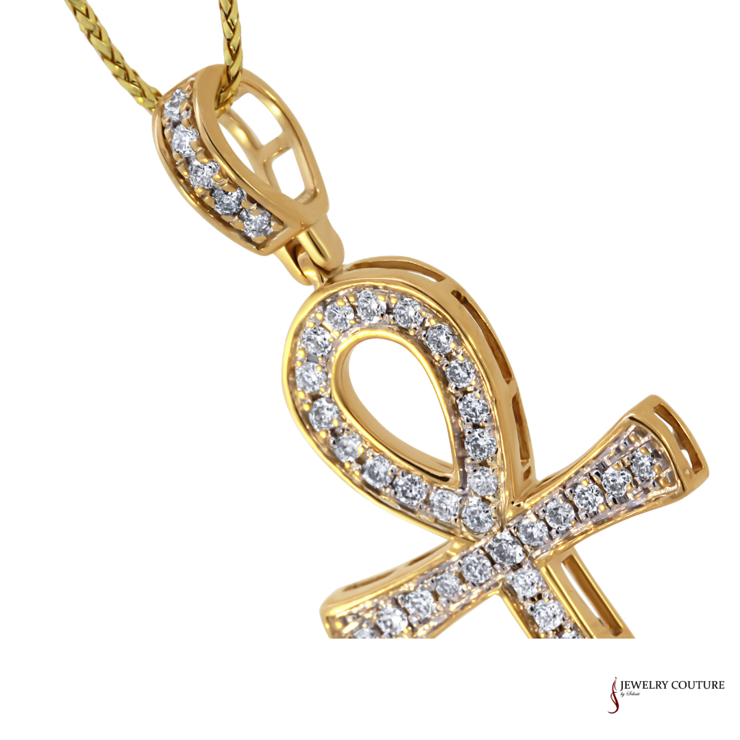 10KT Yellow Gold Ankh Pendant with 0.47 CT TWD Diamonds – Elegant Religious Symbol