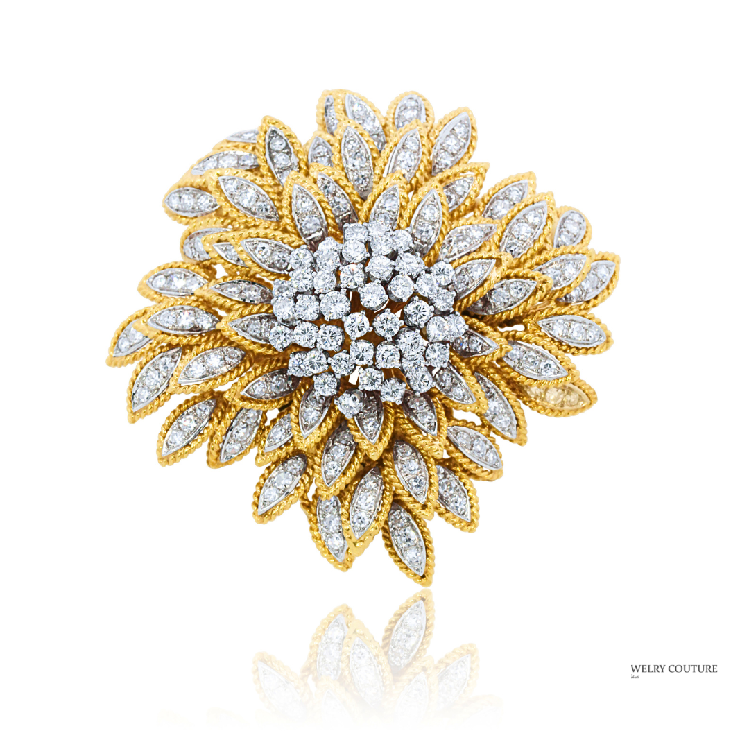 Crafted in yellow and white gold, this piece can be worn as either a luxury brooch or pendant necklace, making it a rare and versatile addition to any fine jewelry collection. Perfect for formal occasions, bridal style, or as a treasured heirloom, this diamond brooch embodies both vintage charm and modern brilliance.