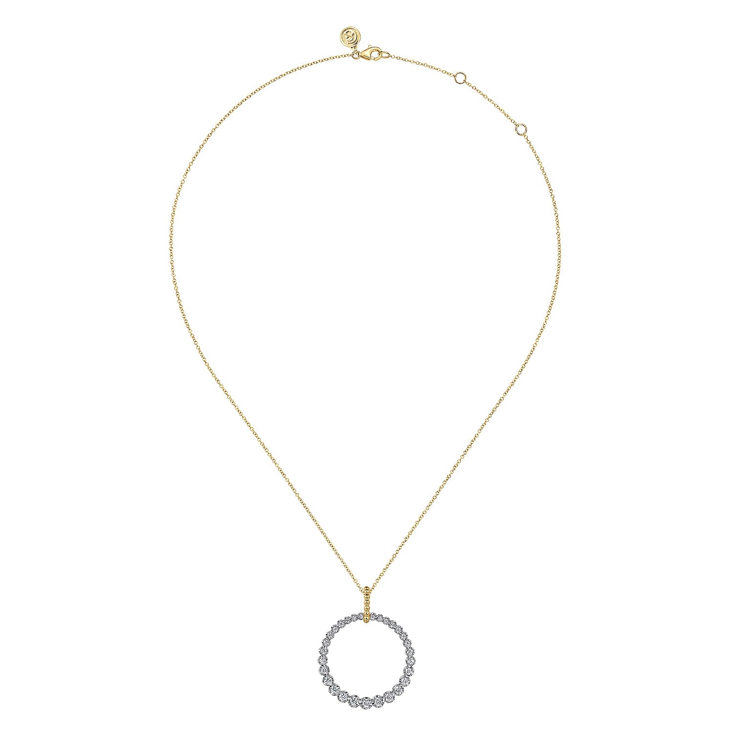 14K White and Yellow Gold Diamond Bujukan 30mm Drop Necklace