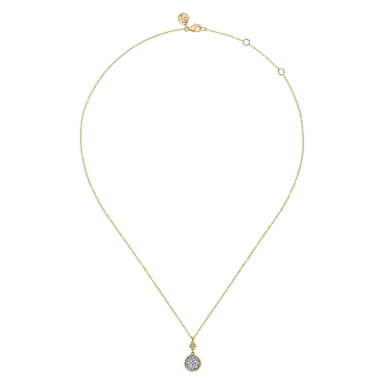 14K White and Yellow Gold Diamond Cluster Bujukan Drop Pendant Necklace
