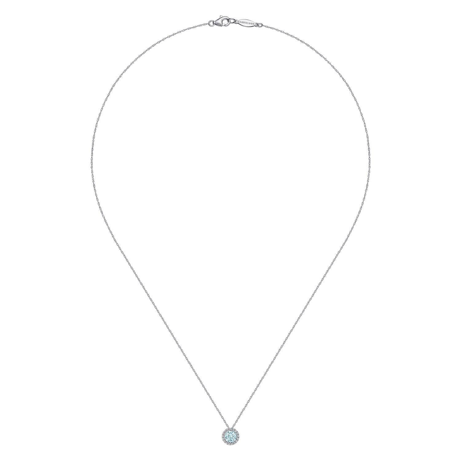 14K White Gold Aquamarine and Diamond Halo Pendant Necklace