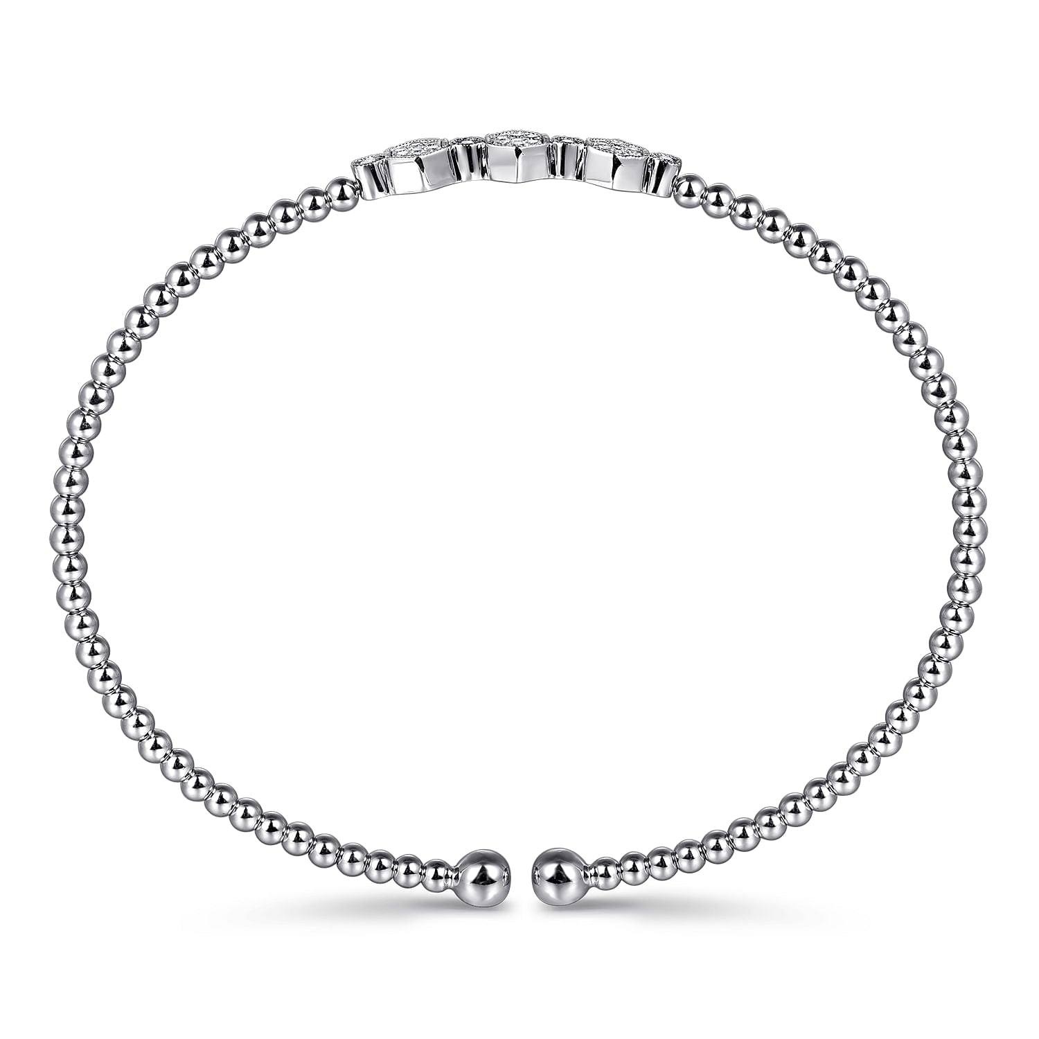 14K White Gold Bujukan Bead and Hexagon Cluster Diamond Bangle