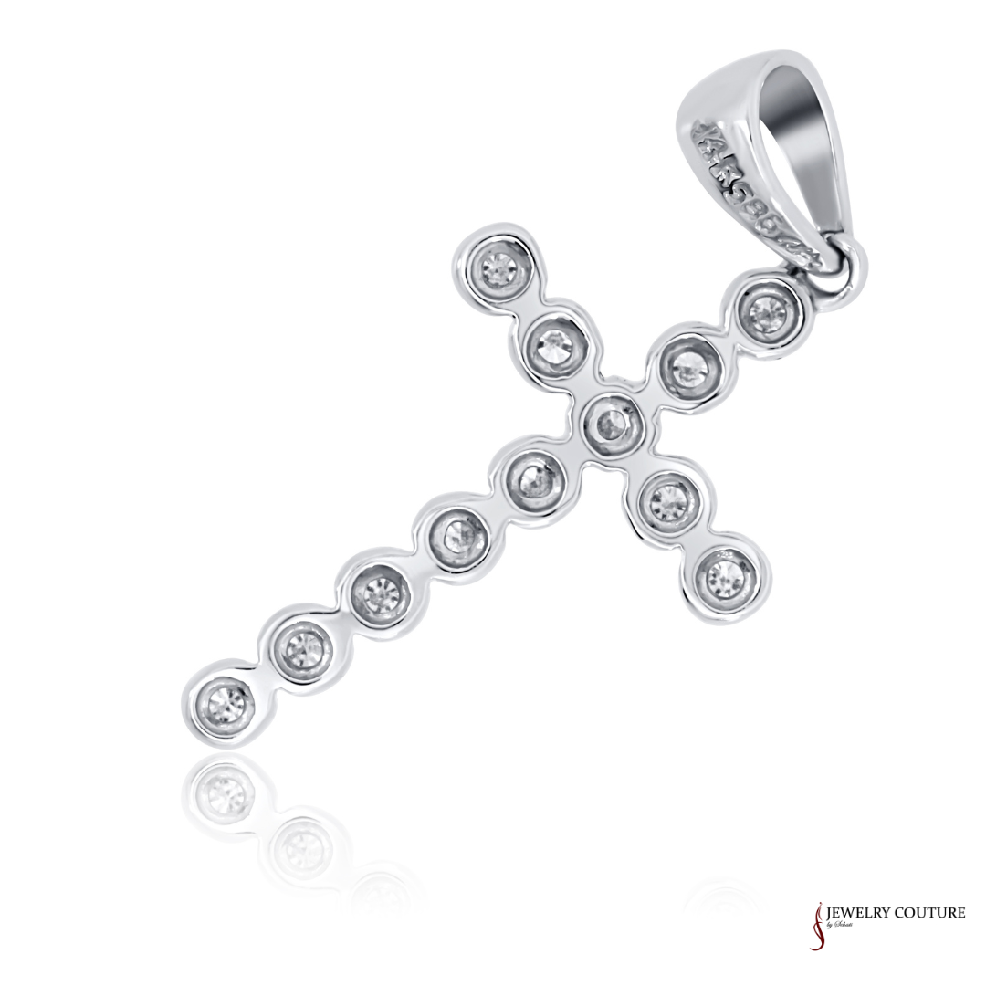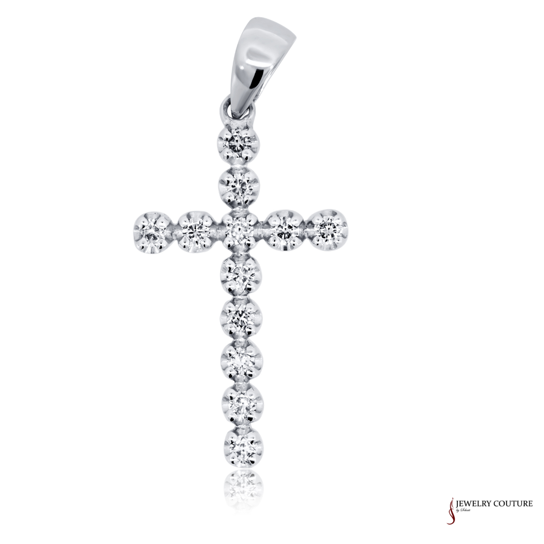 Elevate your faith with this stunning 14K white gold diamond cross pendant, featuring 0.18ct total weight of sparkling diamonds. Each diamond is meticulously set to enhance the pendant's brilliance, making it a timeless symbol of devotion and elegance. The sleek white gold design offers a modern yet classic look, perfect for everyday wear or as a meaningful gift for special occasions.