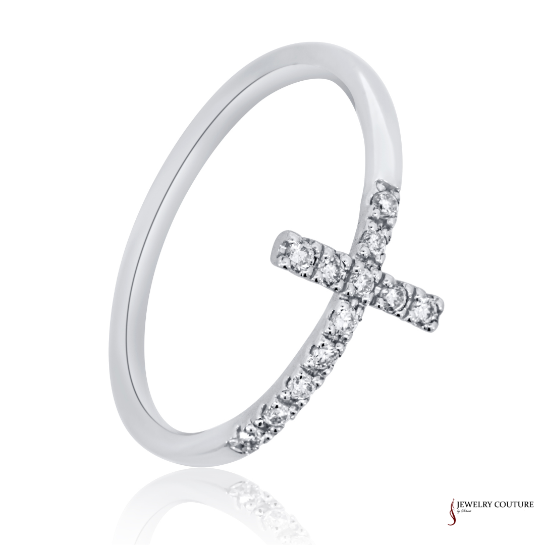 14K White Gold Diamond Cross Ring – 0.13ct Total Weight, Size 7.5