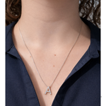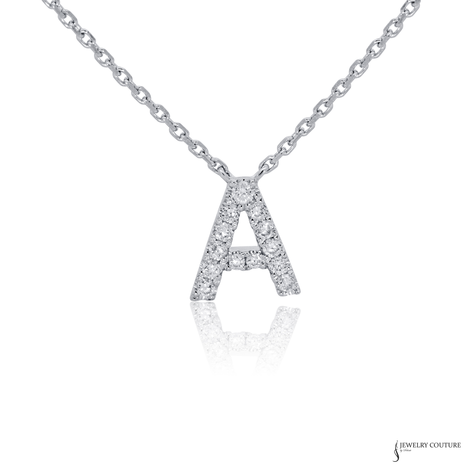 The diamond-set initial “A” is suspended from a delicate 17.5-inch white gold chain, making it perfect for everyday wear or effortless layering. Whether worn as a meaningful personal piece or gifted to someone special, this necklace is a classic symbol of love, identity, and refined style.