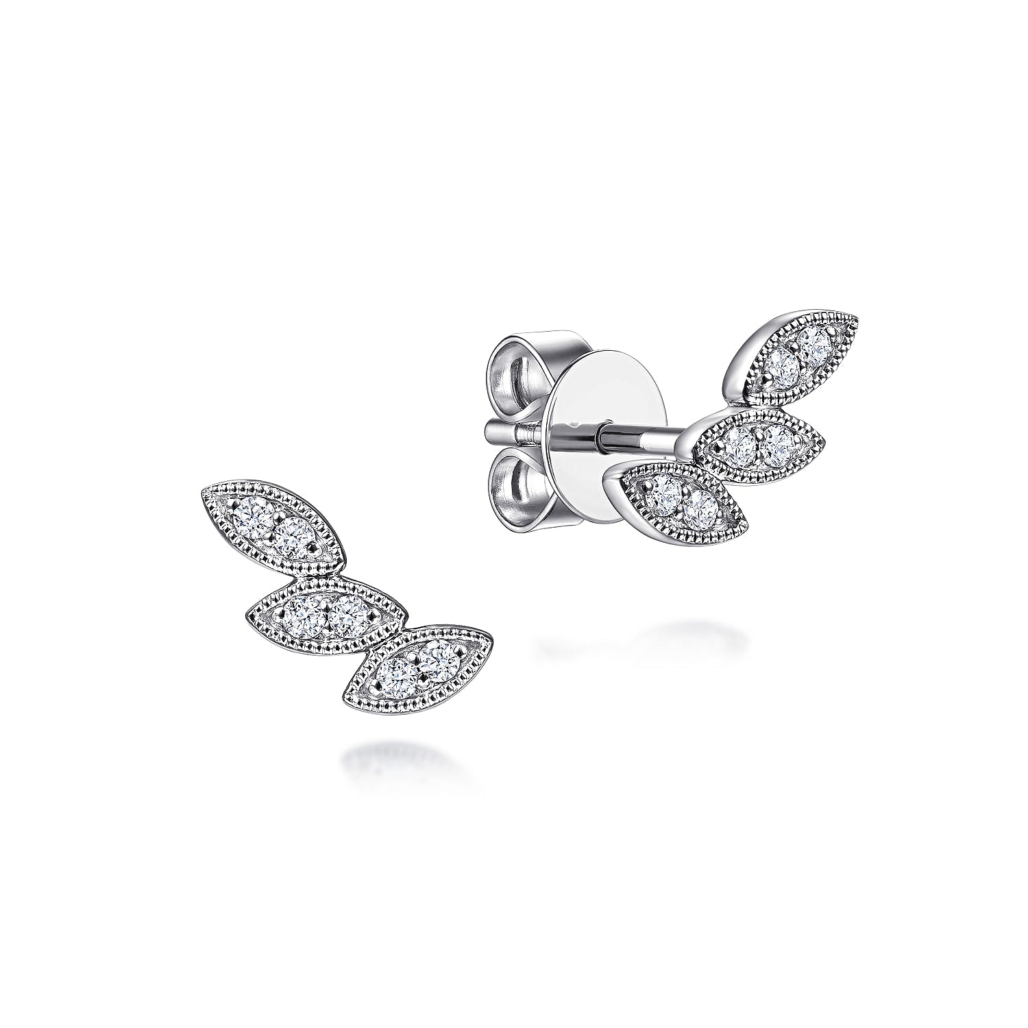 14K White Gold Diamond Leaf Shape Stud Earrings