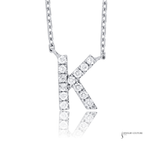 Celebrate your story in timeless brilliance with this 14K White Gold Diamond Letter K Initial Necklace, featuring 0.10 carat total weight (TWD) of natural round brilliant diamonds. Designed for everyday elegance, this sparkling alphabet pendant is set in solid 14kt white gold and suspended from an 18-inch adjustable chain with three length options, allowing you to customize the fit for layering or standalone wear.