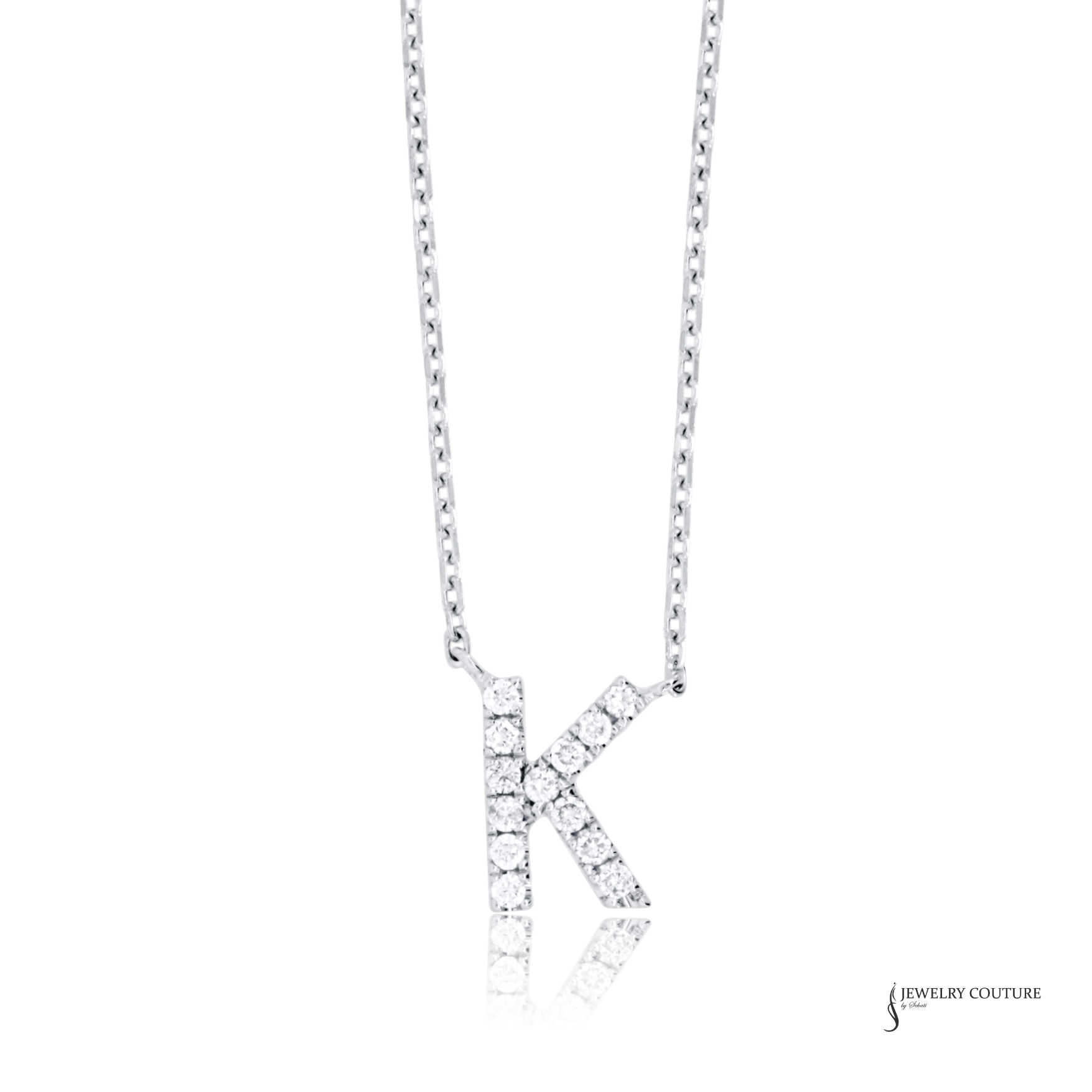 The letter “K” is beautifully outlined in pavé-set diamonds, delivering radiant sparkle from every angle. Whether it represents your first name, last name, a loved one, or a meaningful word, this diamond initial necklace is a refined and personal jewelry essential.