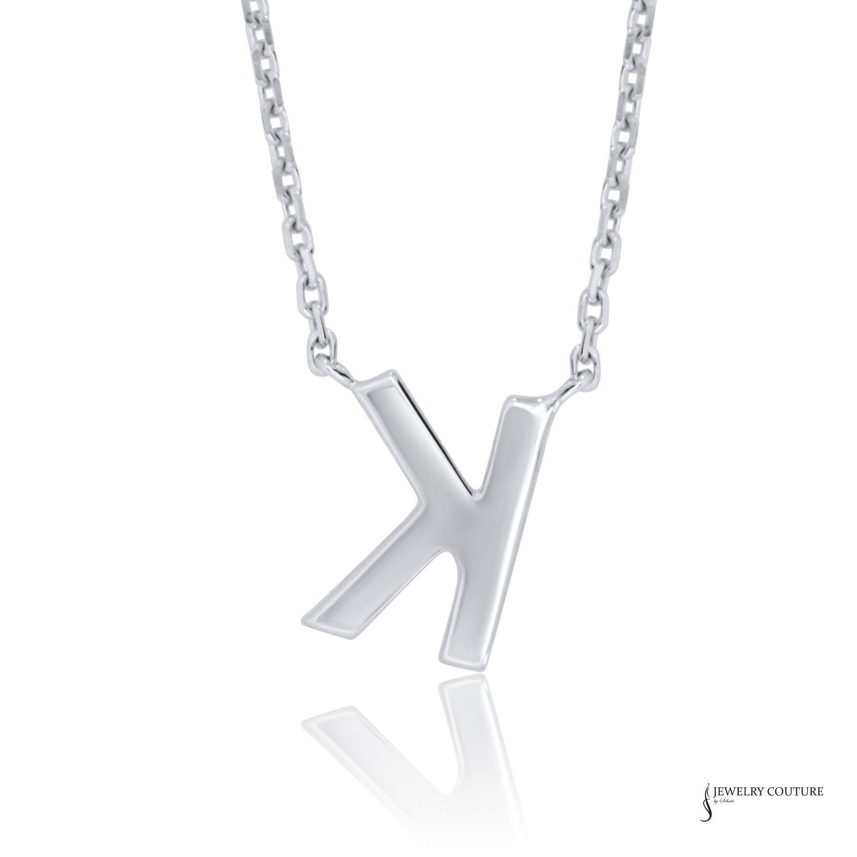 14K White Gold Diamond Letter K Initial Necklace Adjustable Chain – Personalized Alphabet Pendant for Women