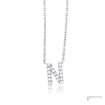 14K White Gold Diamond Letter N Initial Necklace – Adjustable 18” Chain – Personalized Fine Jewelry Gift for Her