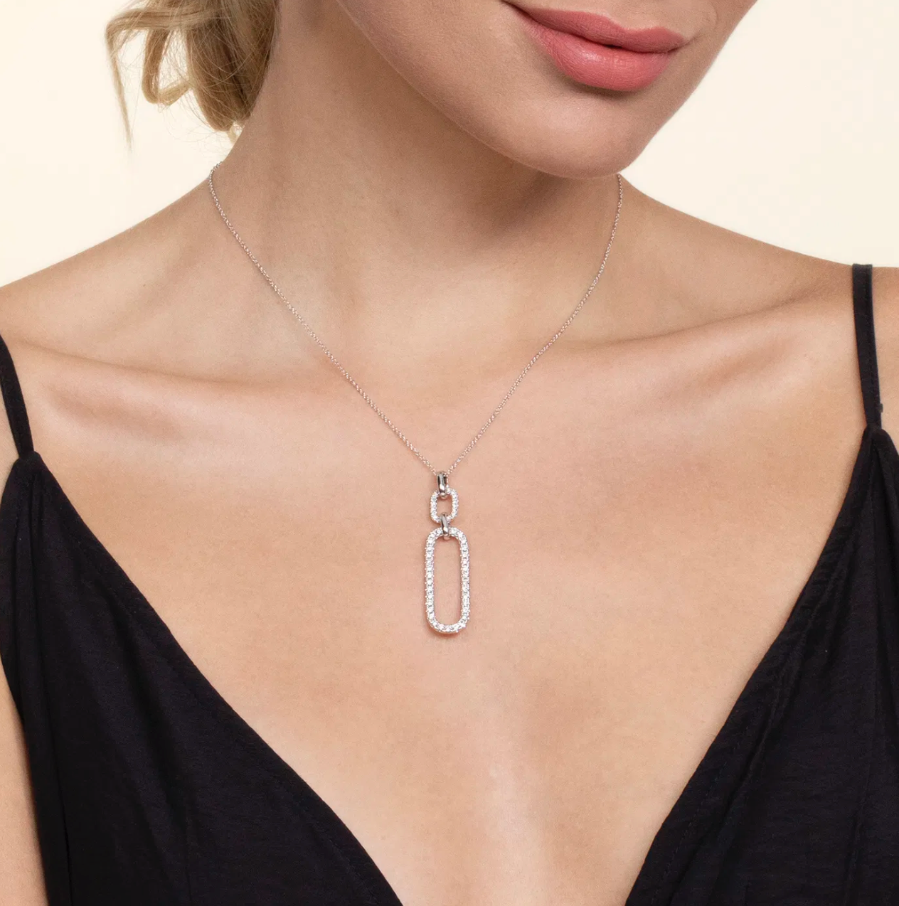 14K White Gold Diamond Link Chain Drop Pendant Necklace