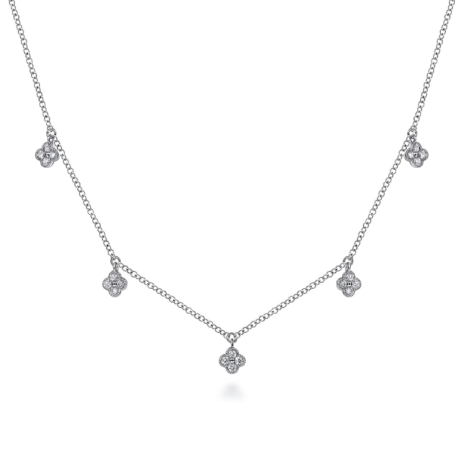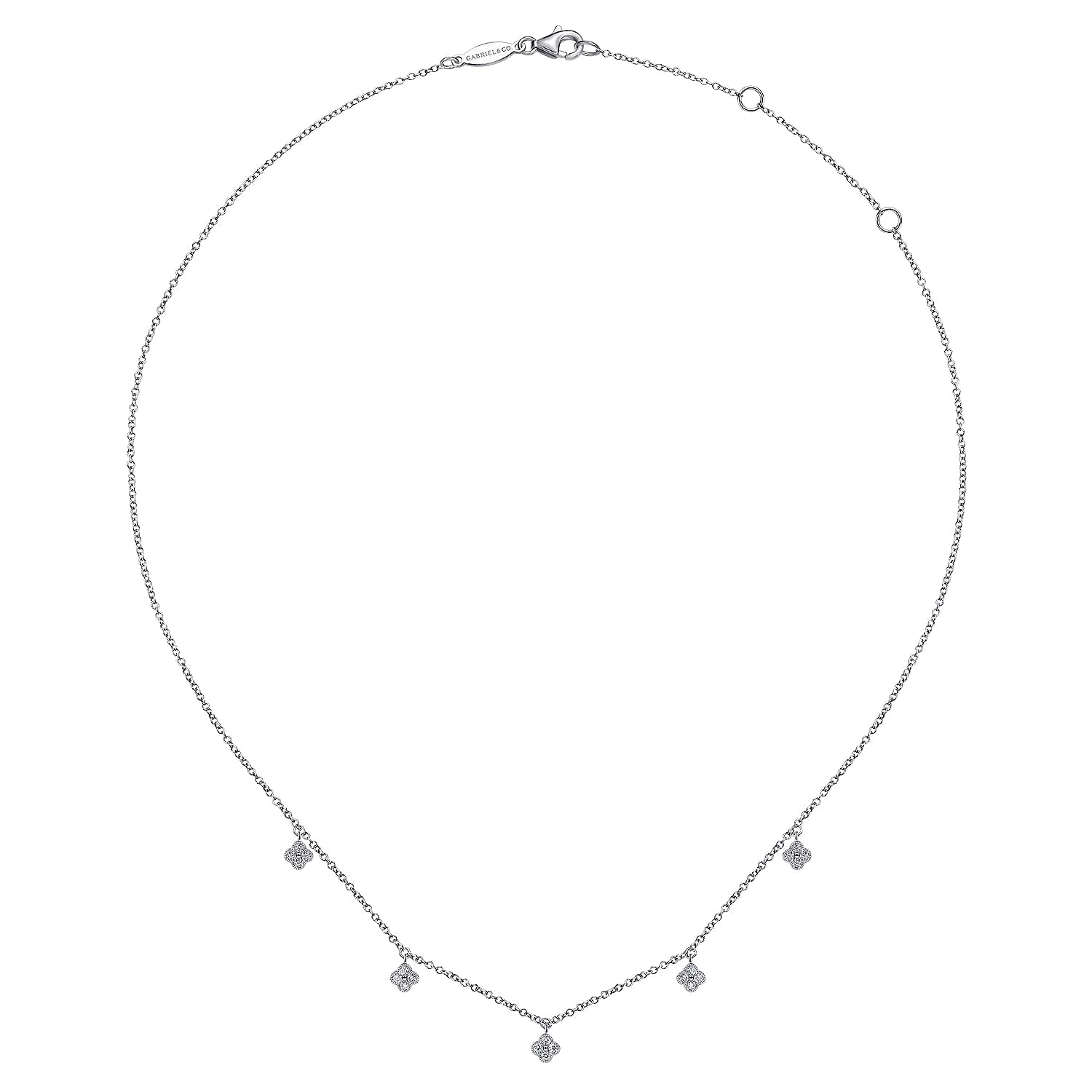 14K White Gold Diamond Pave Clover Drop Necklace In-Store