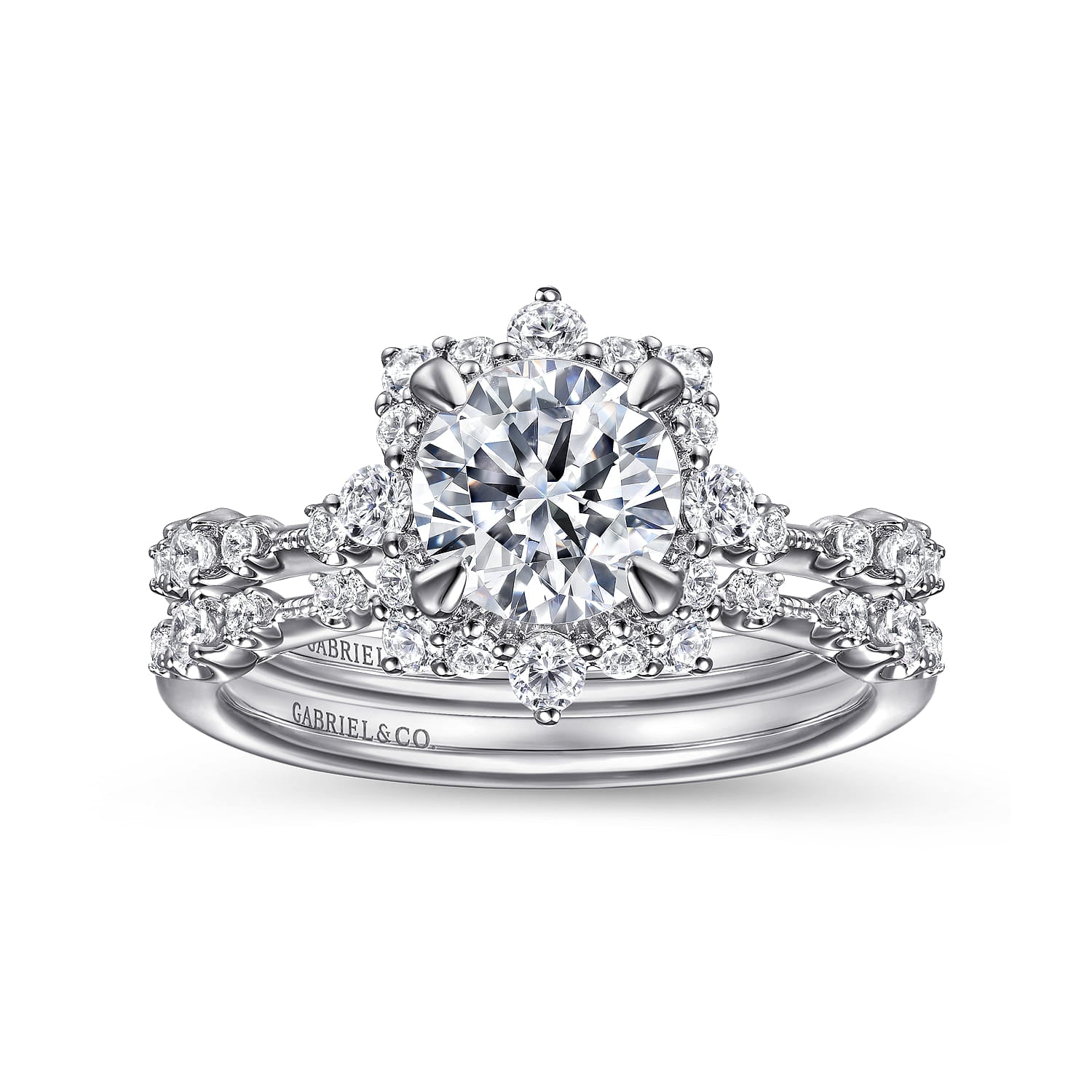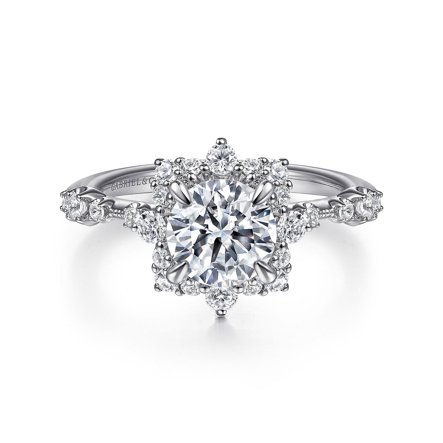 Idalia - 14K White Gold Fancy Halo Round Diamond Engagement Ring