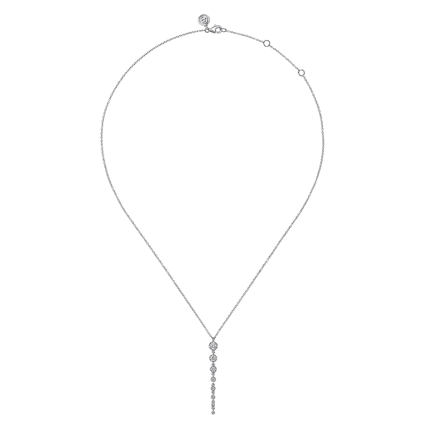 14K White Gold Graduating Vertical Diamond Bar Necklace