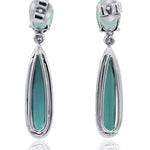 14K White Gold Green Tourmaline and Diamond Drop Earrings | Tourmaline & Diamond Dangle Earrings