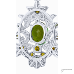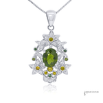 14K White Gold Green Tourmaline & Multi-Gemstone Pendant | Oval Tourmaline | Statement Floral Design