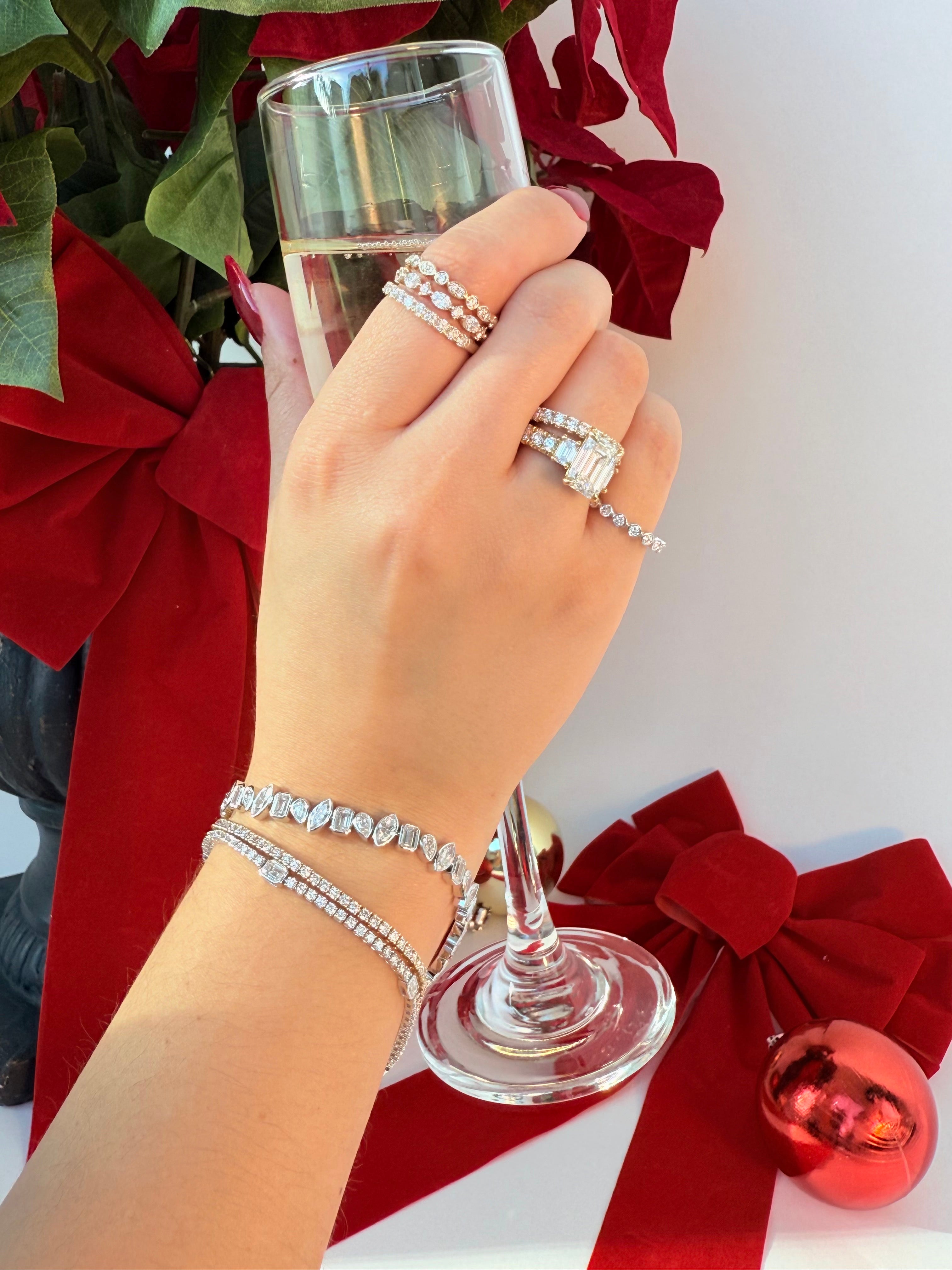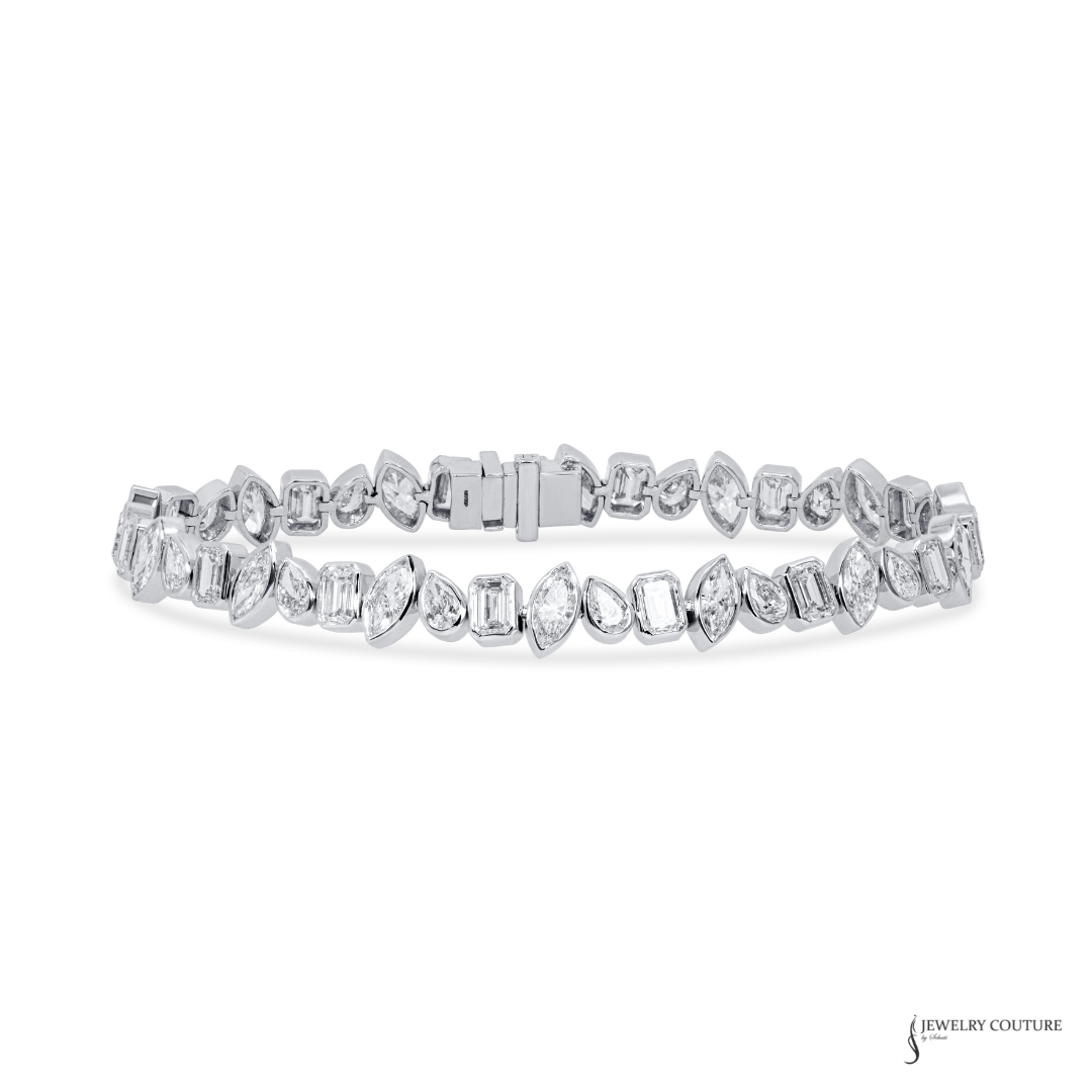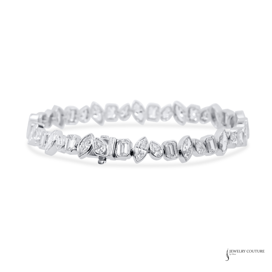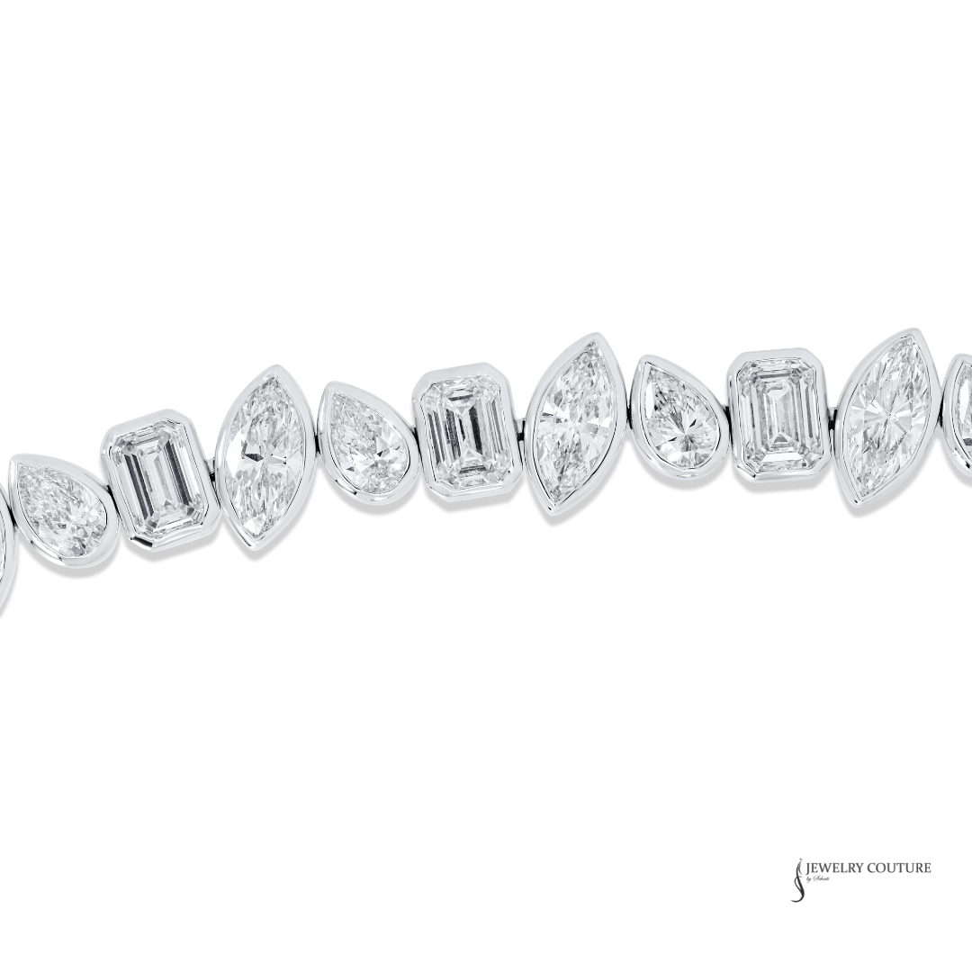 Stunning 14K white gold lab grown diamond tennis bracelet, featuring an impressive 12.51 carats total weight of F color, VS1 clarity lab-grown diamonds. Designed for brilliance and elegance, this bracelet showcases a sophisticated mix of pear-shaped, marquise, and emerald-cut diamonds, creating a modern yet timeless silhouette.